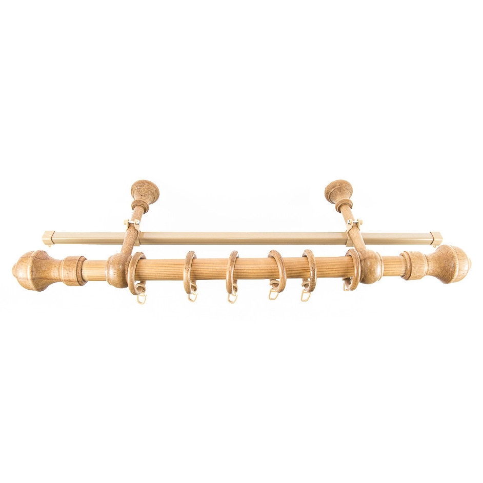 Kit galerie ARES, lemn masiv, culoare STEJAR 280 cm + sina U bej 270 cm, accesorii incluse