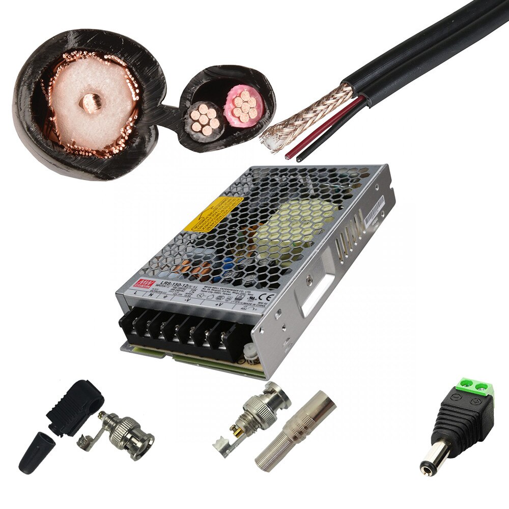 | Accesorii incluse | Sursa alimentare camere Cablu coaxial cu alimentare 160m 16x Mufe BNC tata 90° 16x Mufe BNC tata cu fir metalic 16x Mufe alimentare tata |