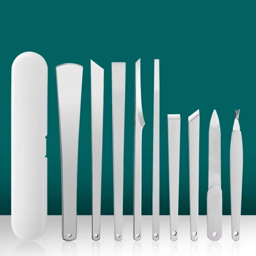 Kit Pedichiura 9 Piese, CRM, Instrumente pentru Curatarea Calcaiului si Unghii Perfecte, Portabil, Argintiu