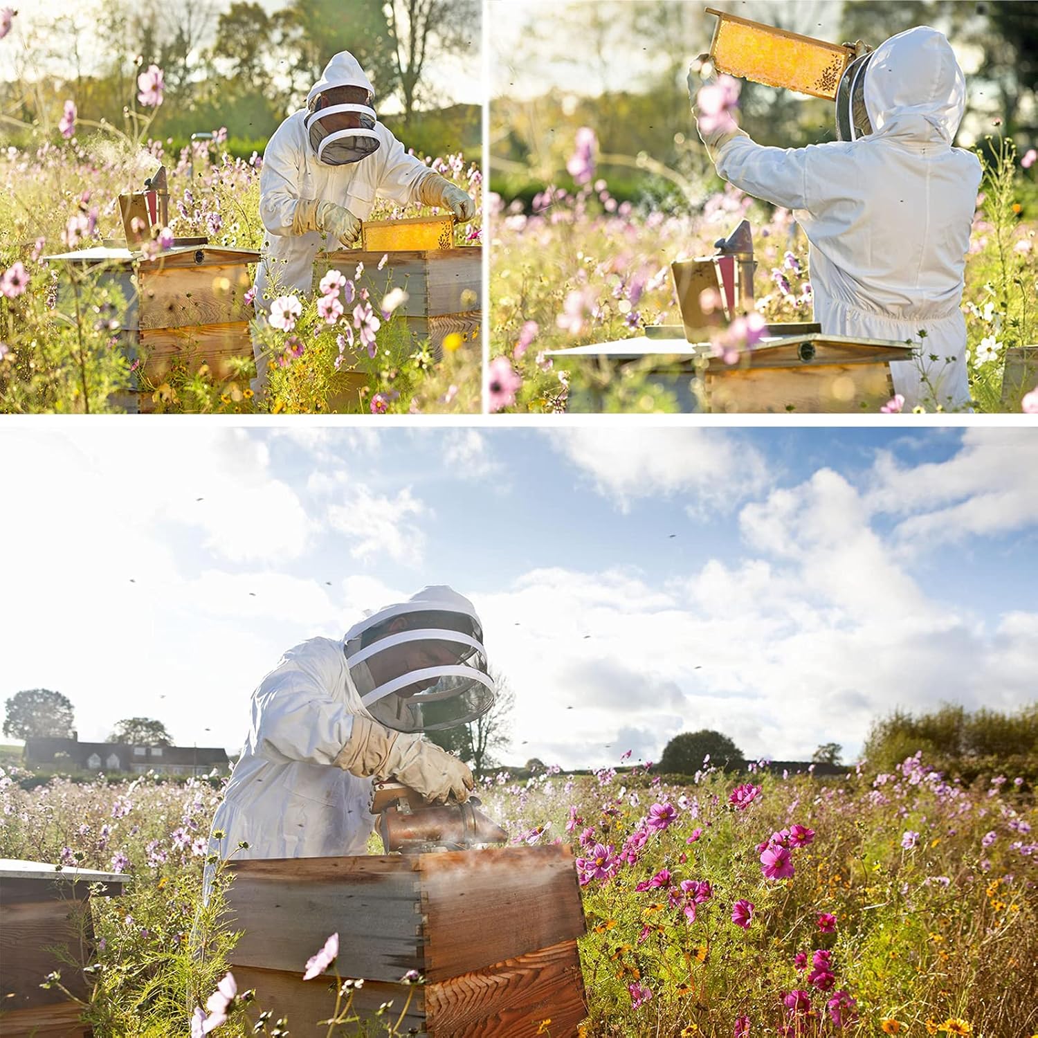 Kit pentru apicultura, Set cu 2 unelte - cleste pentru stup si racleta cu furculita, inox/ lemn