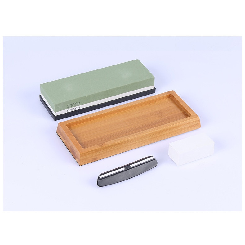 Kit Piatra de ascutit cutite 400/1000 si 3000/8000, XGETOP® cu piatra de aplatizare, baza de bambus, ghidaj unghi ascutire si curea de piele, Multicolor