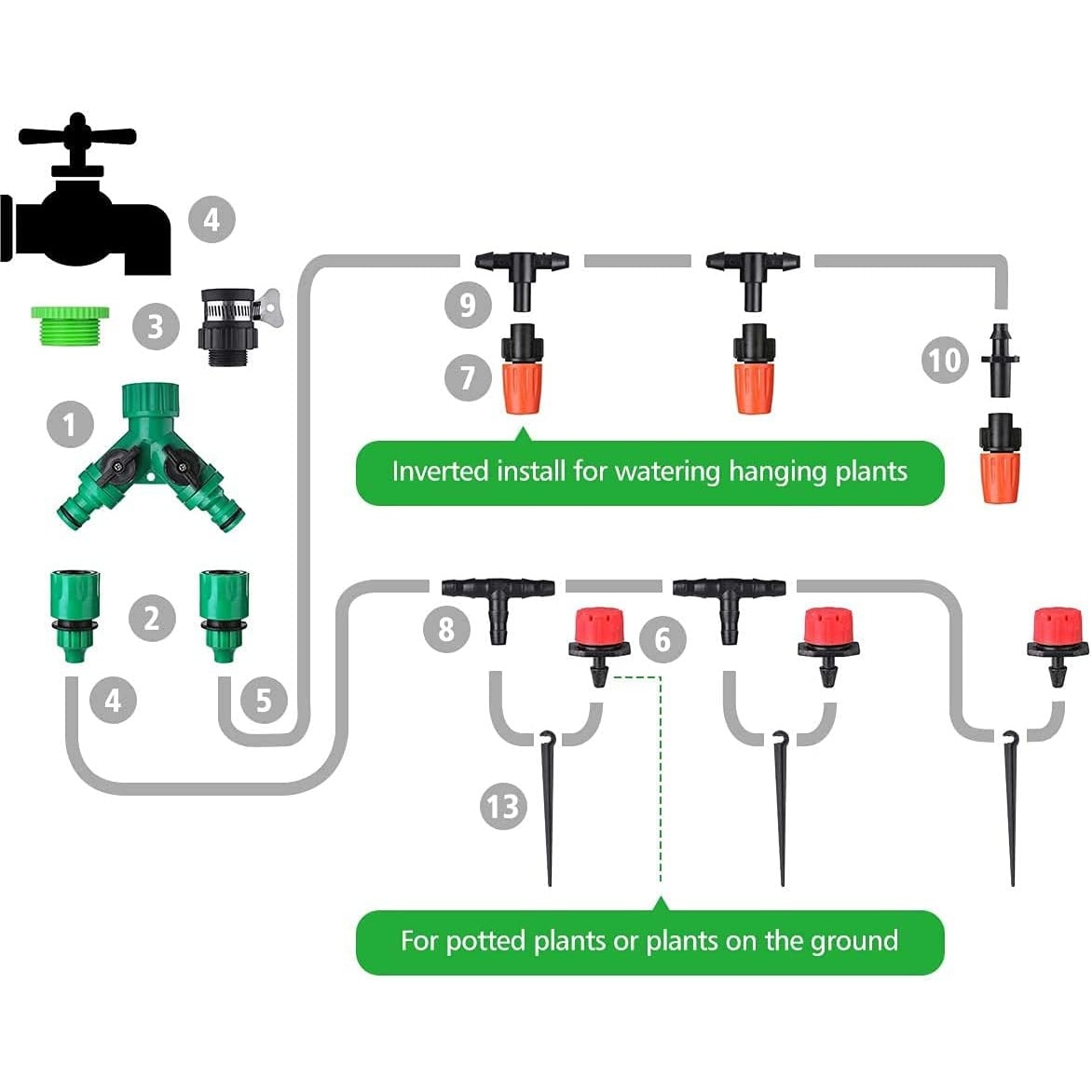 Kit sistem automat de irigare prin picurare, Azhoktd, ABS, 158 bucati, Multicolor