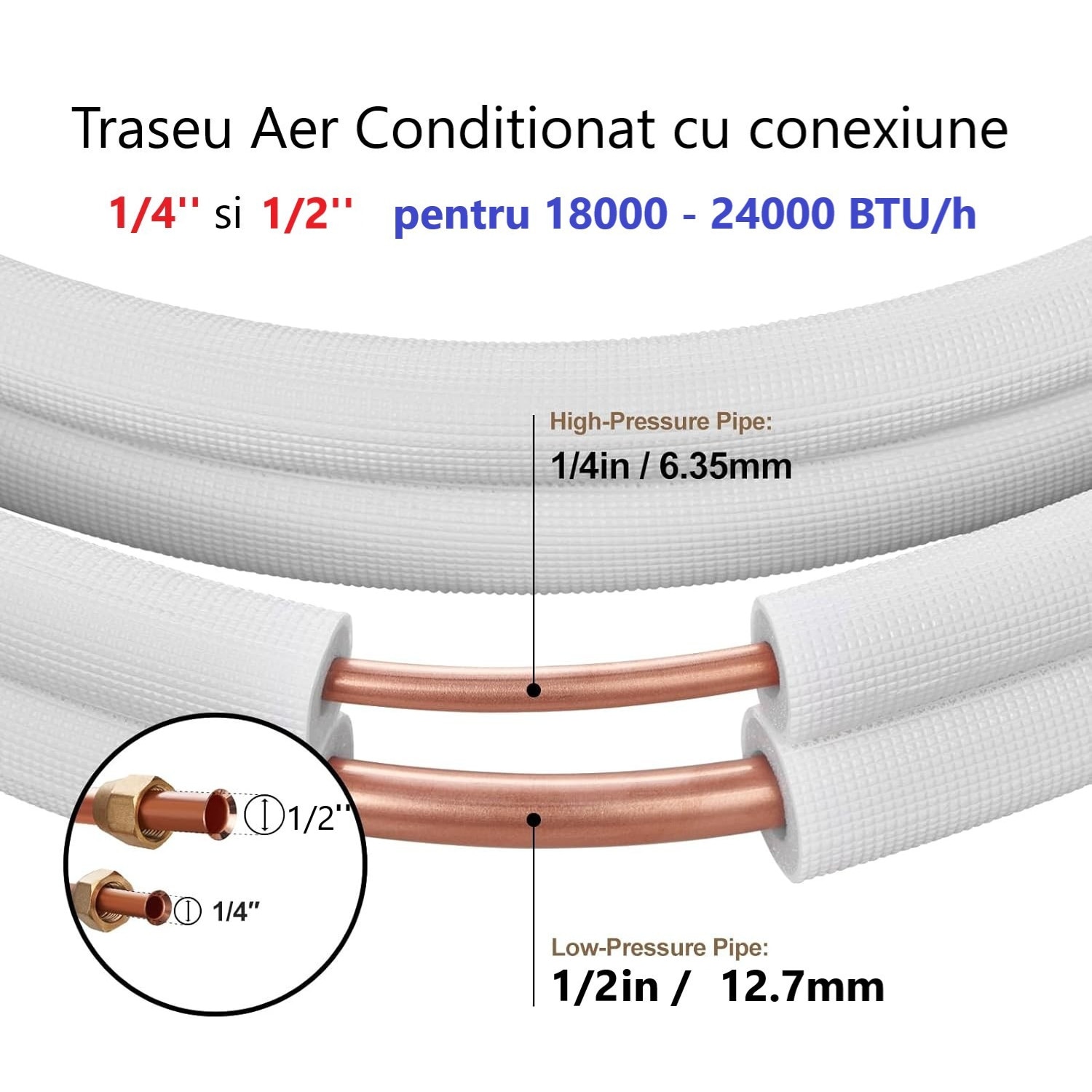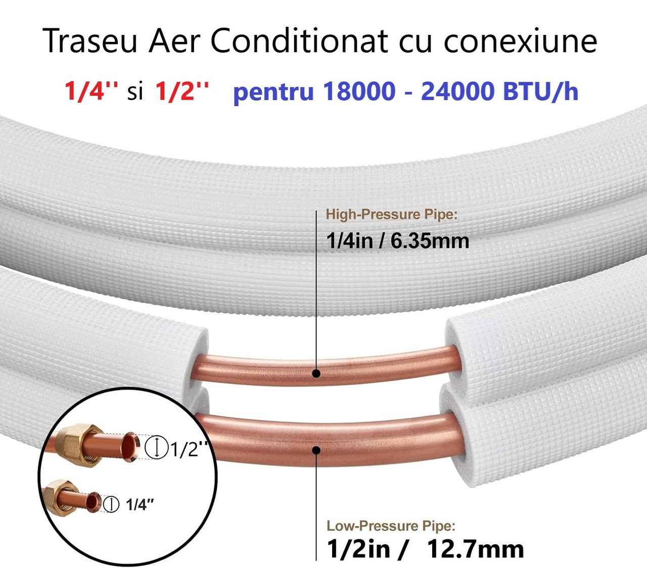 Kit Teava Cupru 10 metri 1/4'', 1/2'' pentru instalare Aer conditionat 18000 BTU/h, Alb