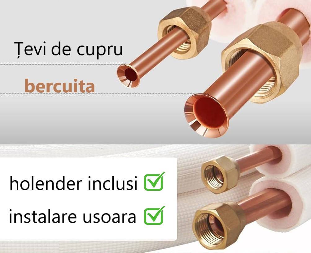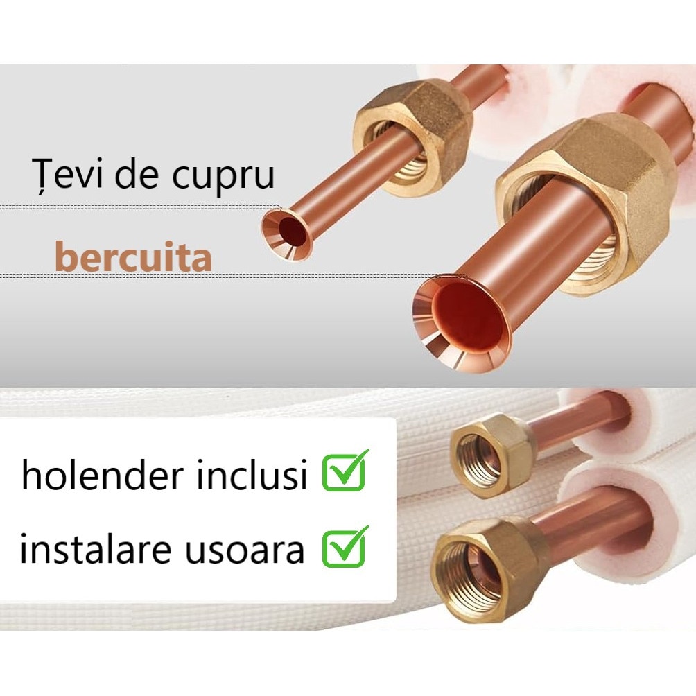 | Continut pachet | Teava izolata cupru 1/4'' 1/2'' - 10 ml bercuit cu holender |