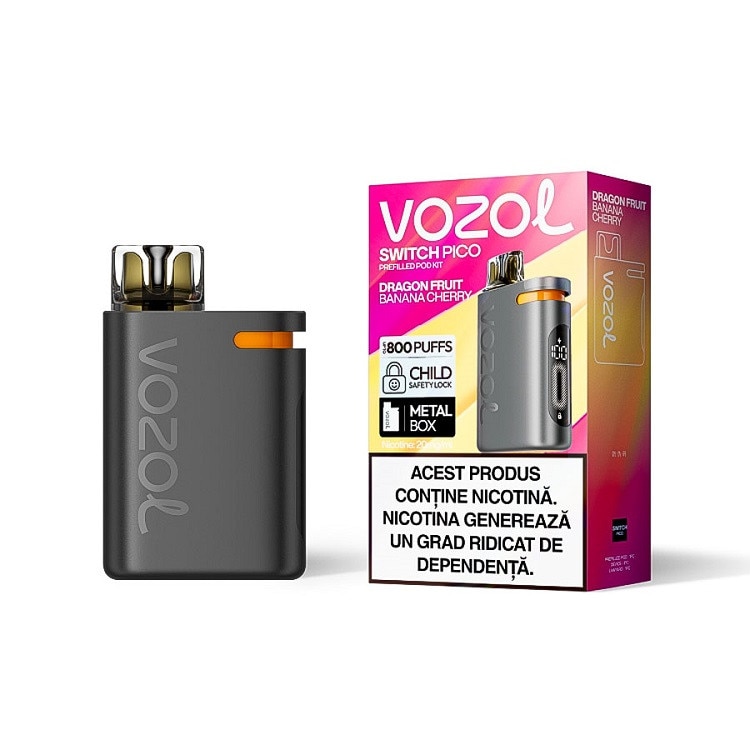 Kit Tigara electronica Vozol Switch Pico 800 - Dragon Fruit Banana Cherry, 2ml, 20mg/ml nicotina, autonomie pana la 800 pufuri