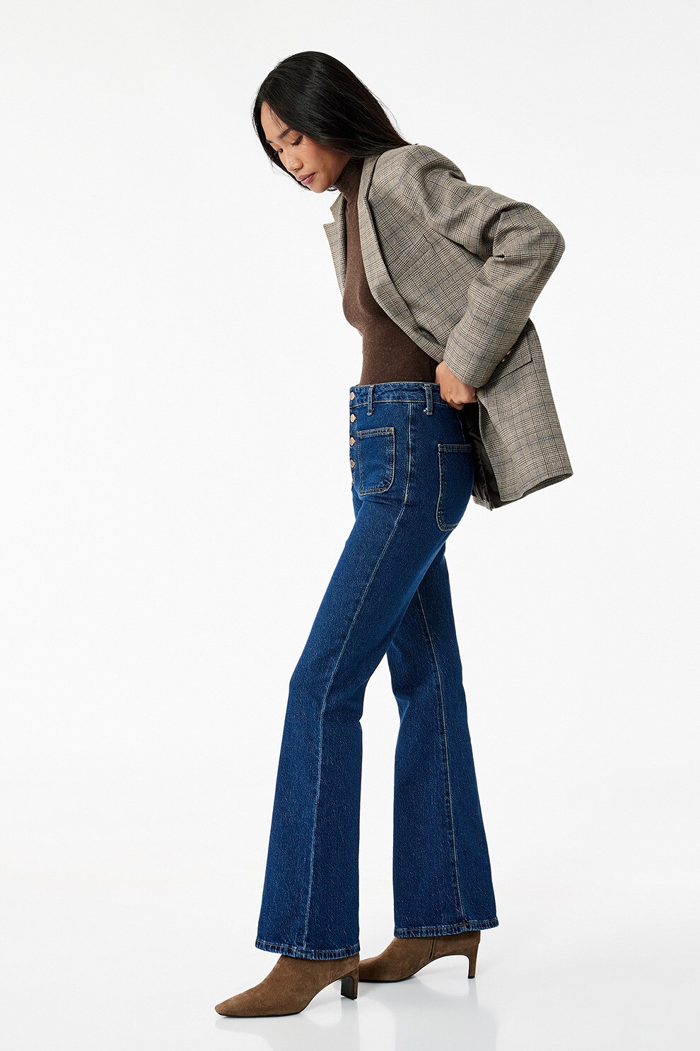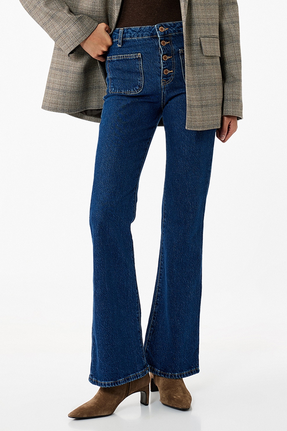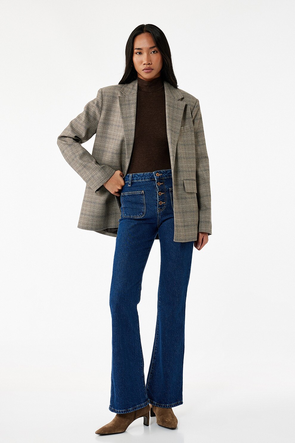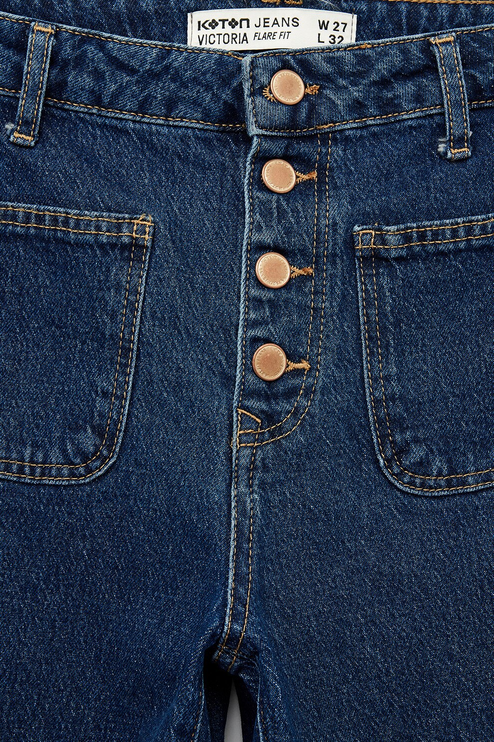 KOTON - Blugi evazati cu talie inalta, Albastru inchis