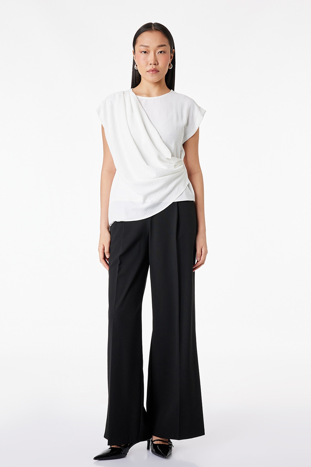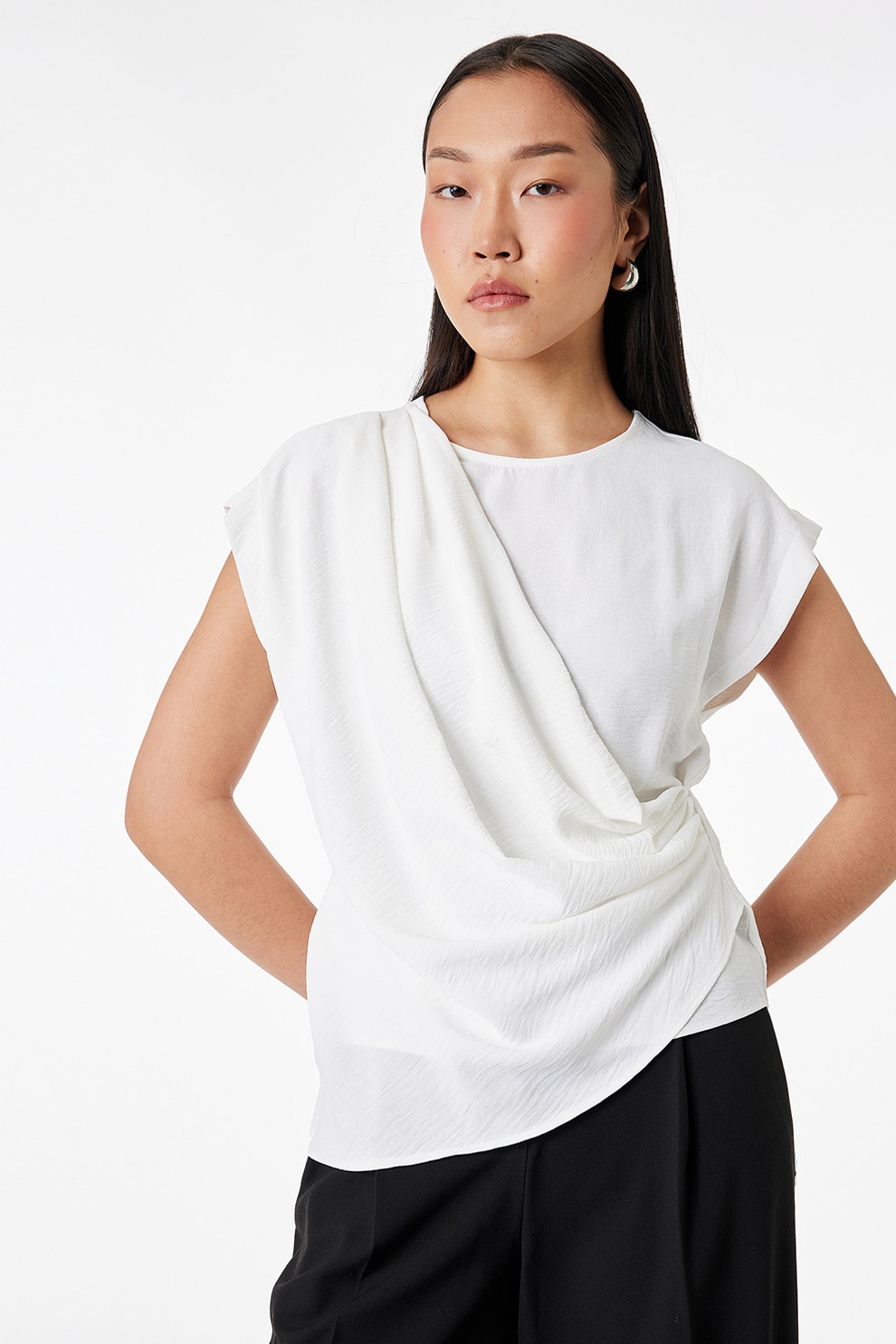 KOTON, Bluza cu segment drapat si terminatie asimetrica, Alb murdar