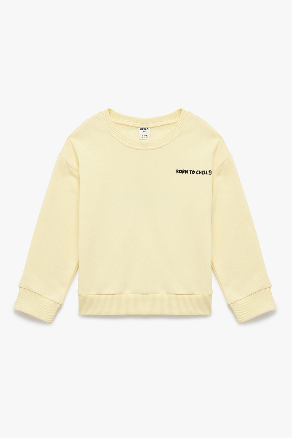 KOTON - Bluza de trening cu maneci cazute si model uni, Galben pal