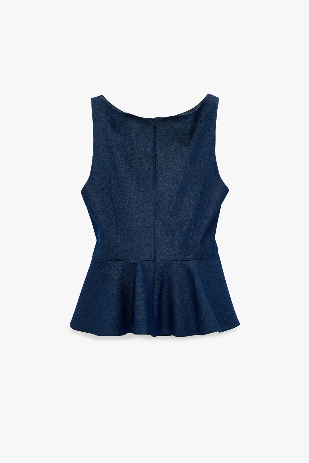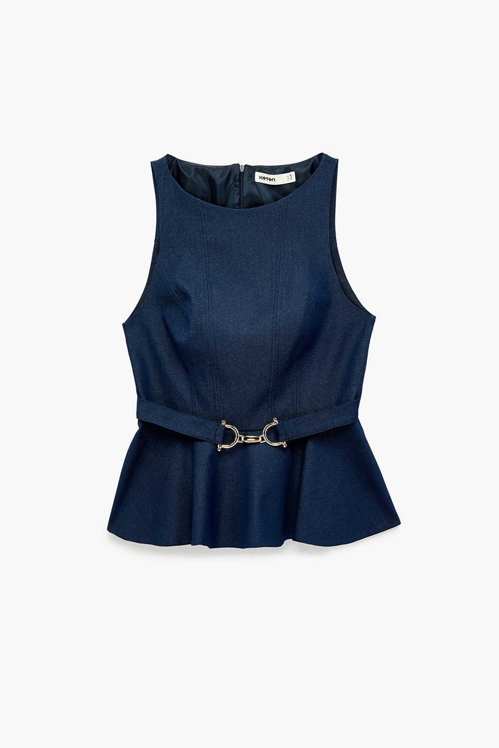 KOTON - Bluza fara maneci cu peplum si o curea, Bleumarin