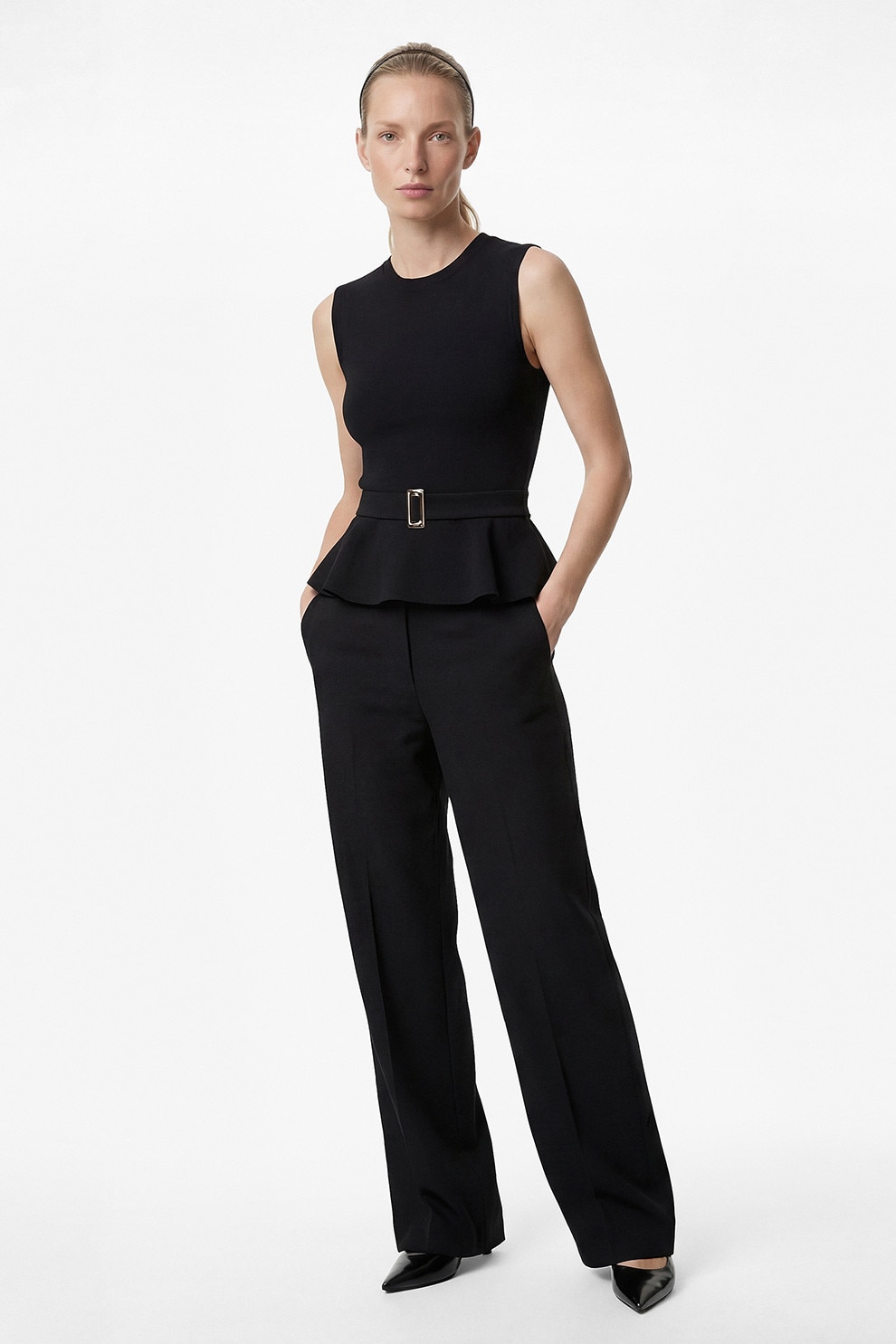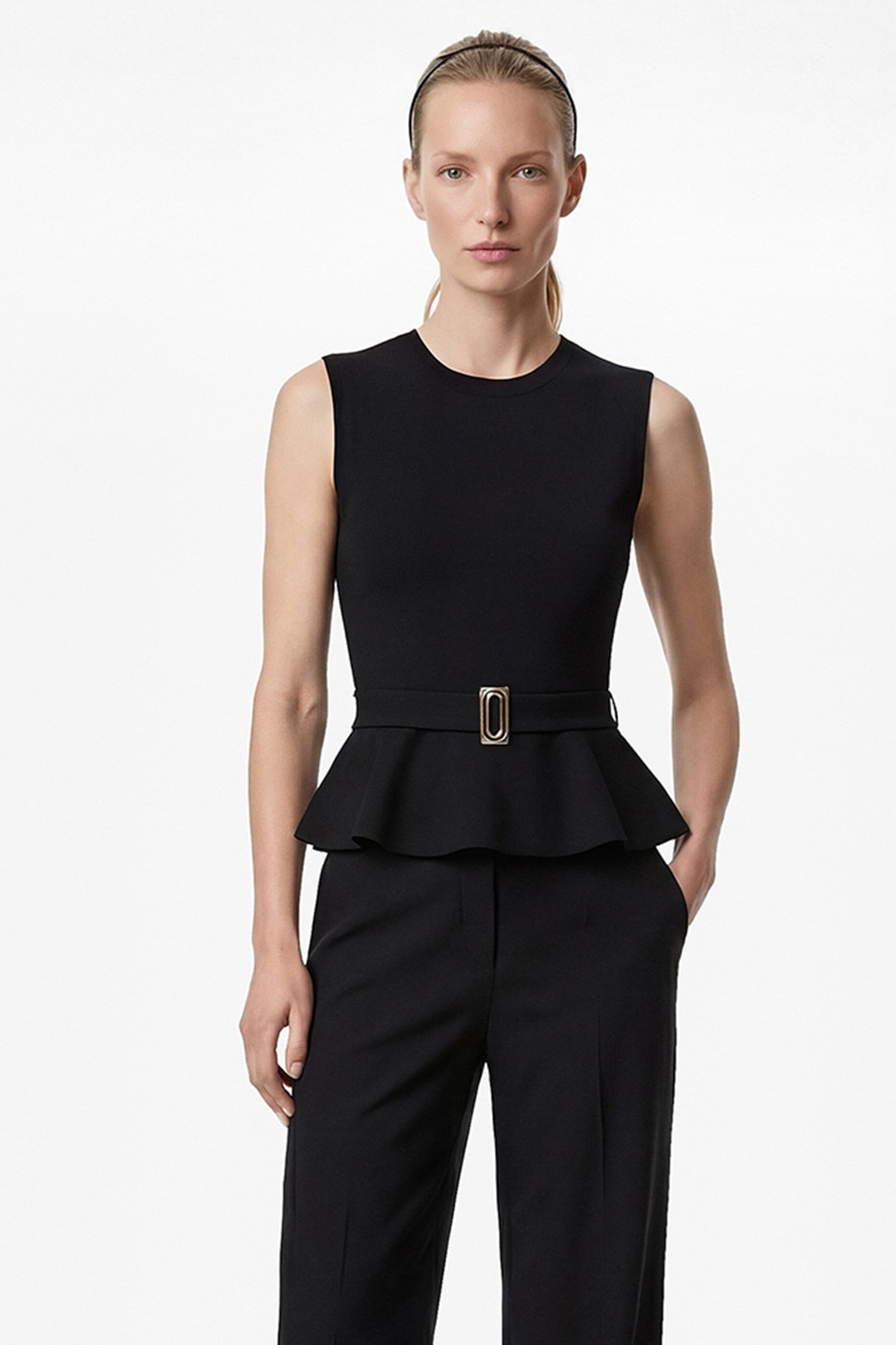 KOTON, Bluza fara maneci cu terminatie plepum si curea, Auriu/Negru