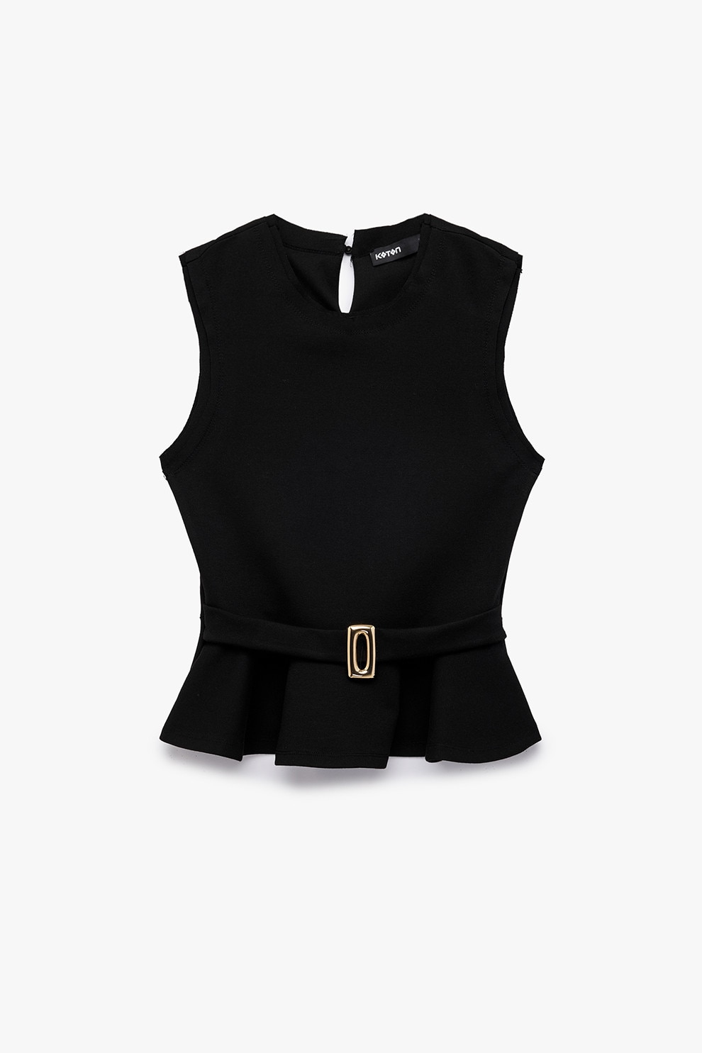 KOTON - Bluza fara maneci cu terminatie plepum si curea, Auriu/Negru