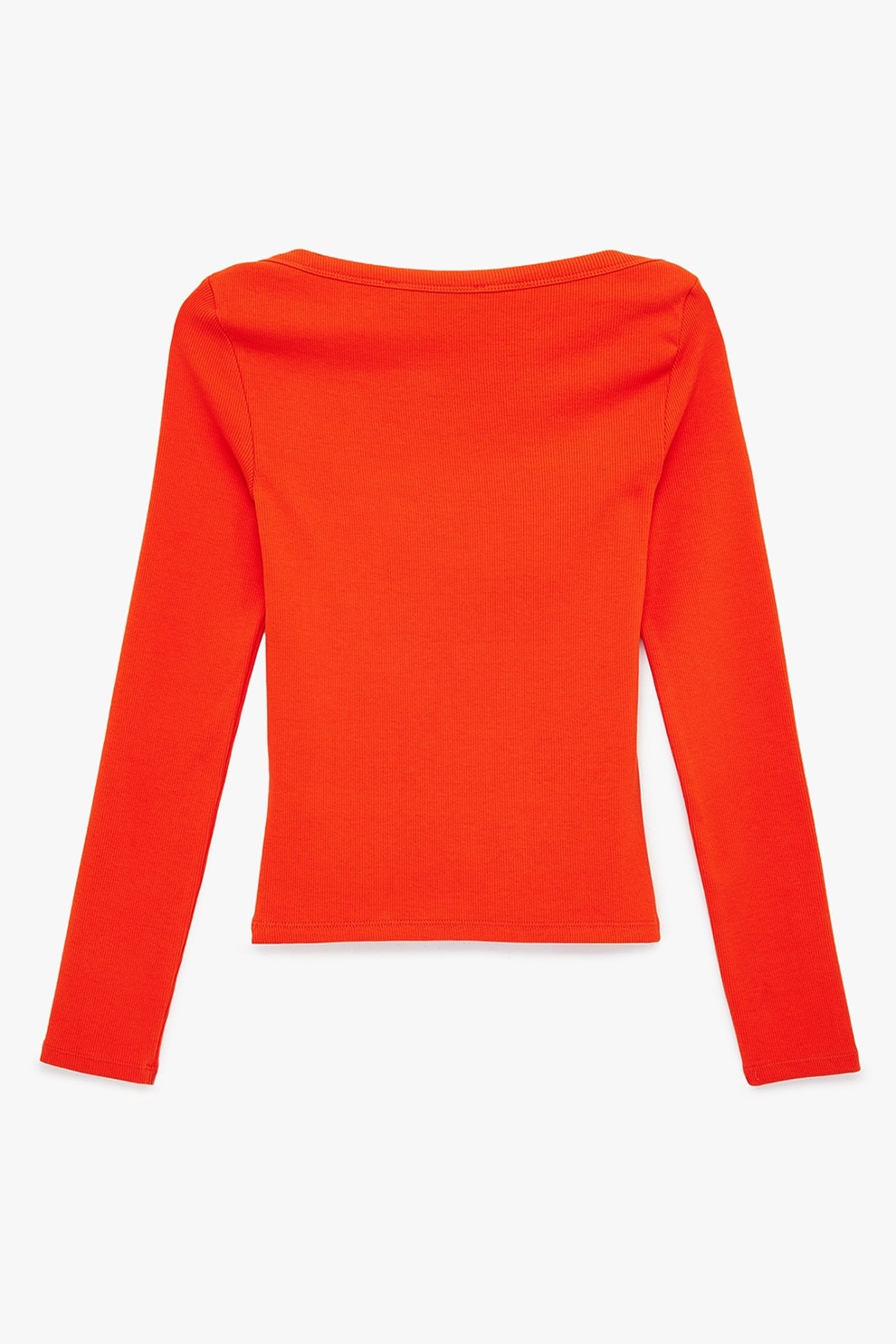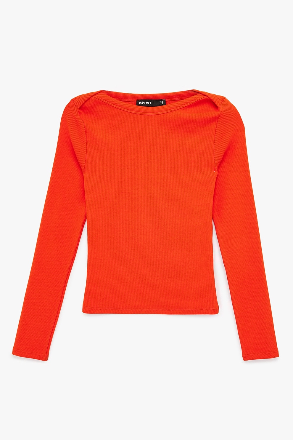 KOTON - Bluza striata cu decolteu barcuta, Rosu vermillion