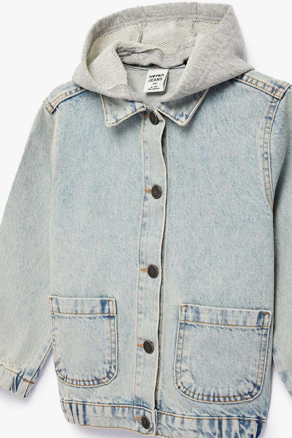 KOTON - Jacheta din denim cu gluga detasabila, Albastru deschis