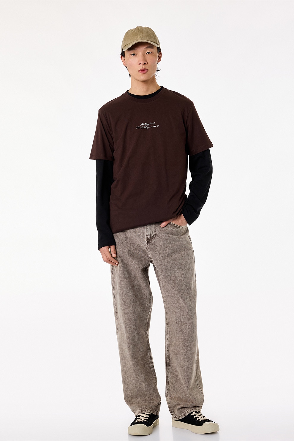 KOTON - Tricou din bumbac cu imprimeu text, Maro inchis