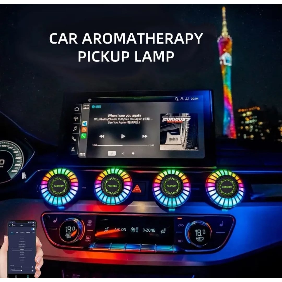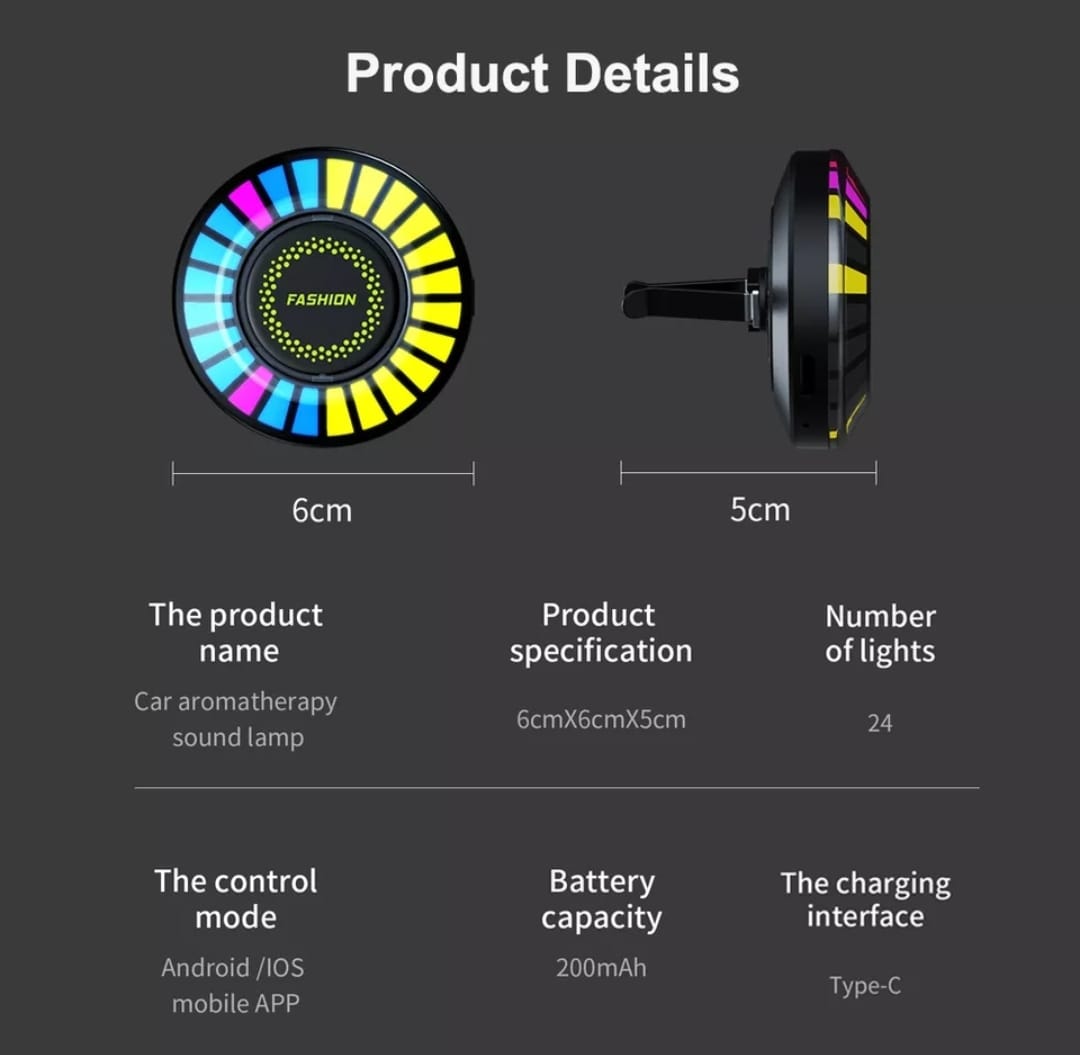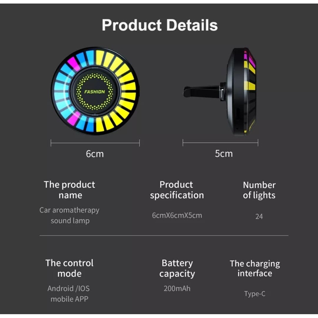 Lampa Ambientala si Difuzor Auto cu Functie de Odorizant, Umidificator si Aromaterapie cu Ritm Muzical RGB pentru Interior cu 24 de LED-uri, AutoREY®
