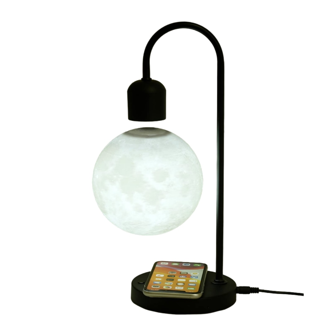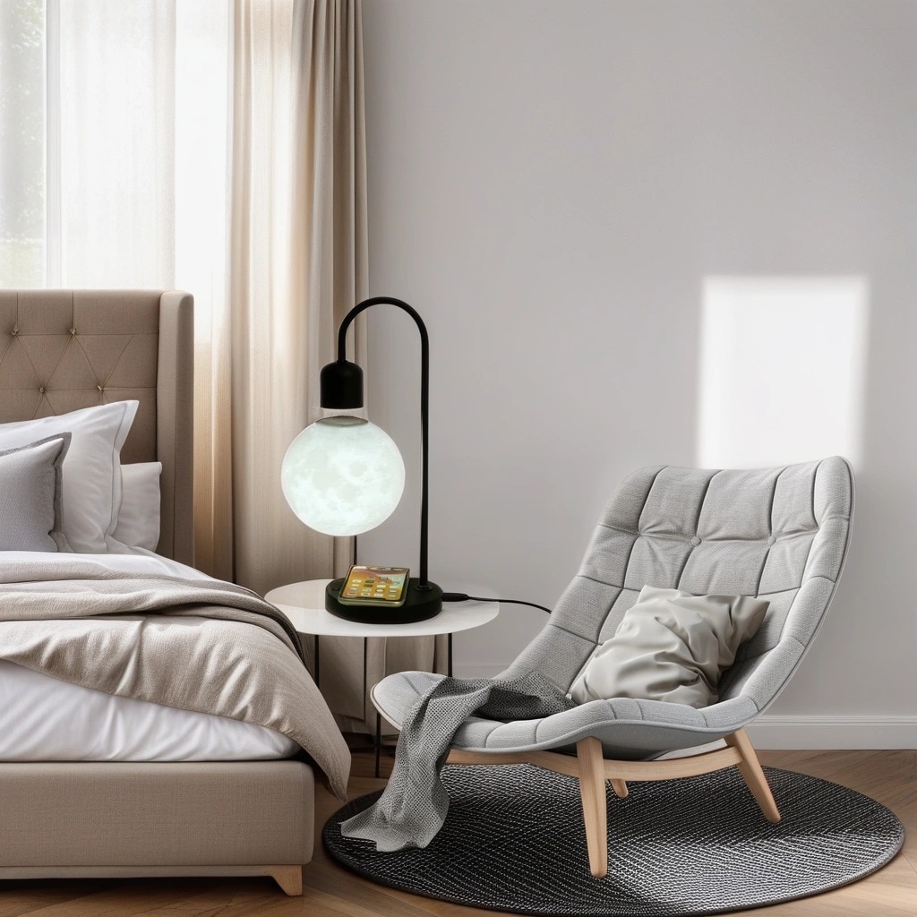 Lampa de Veghe, Luna care Leviteaza si Incarcator Wireless VENTLEX, Control tactil ON/OFF, Sursa de Lumina LED Magnetica, Negru