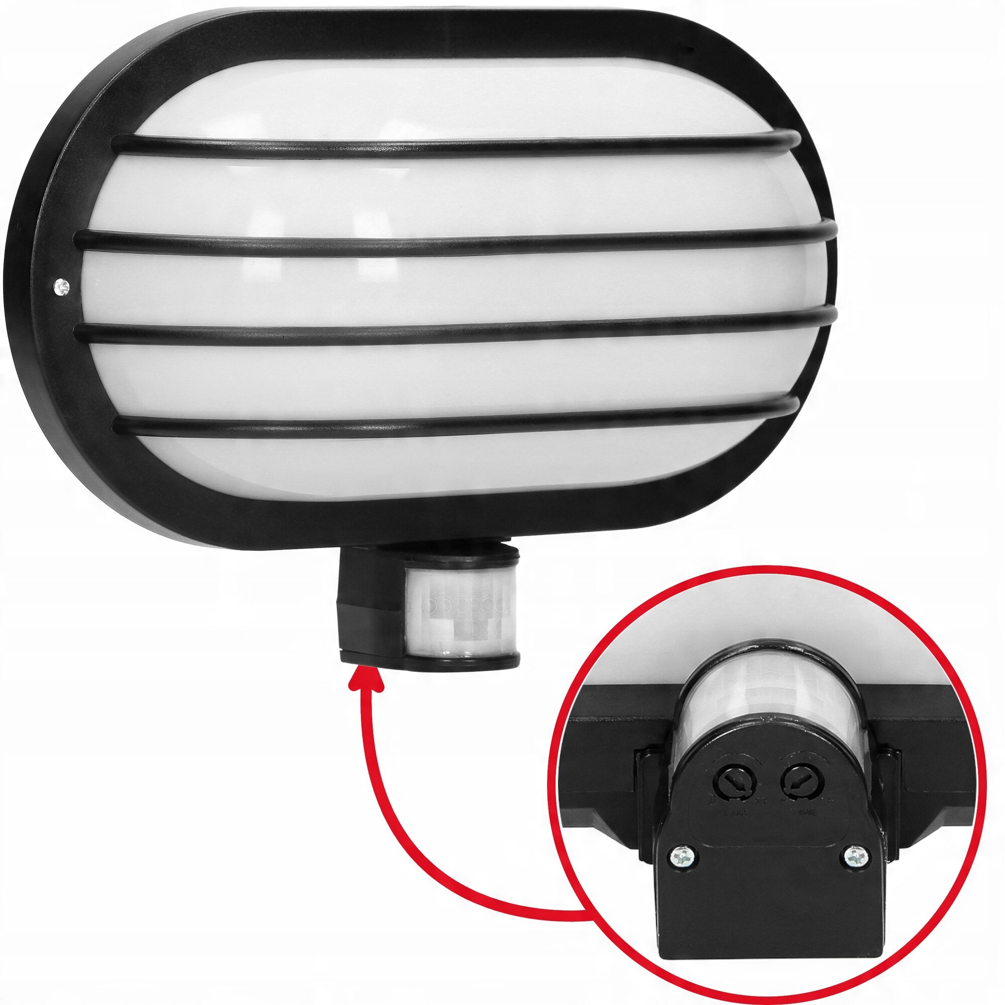 Lampa exterioara Virone cu senzor de miscare si senzor de intuneric, 60W, IP44, neagra, 265x185x105mm, set 1 bucata