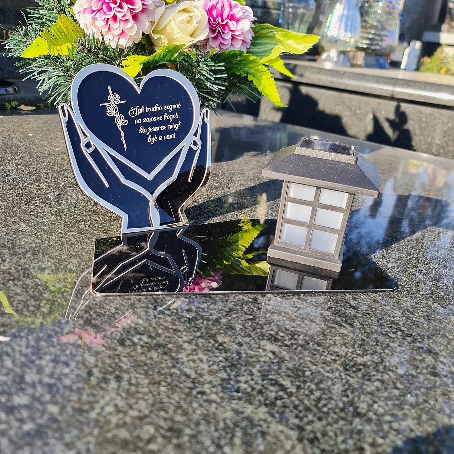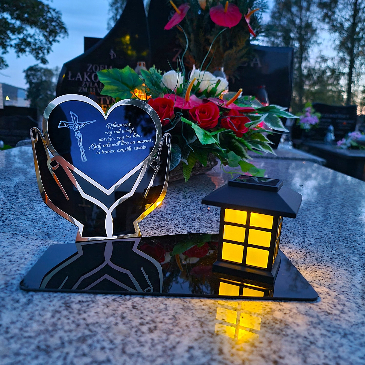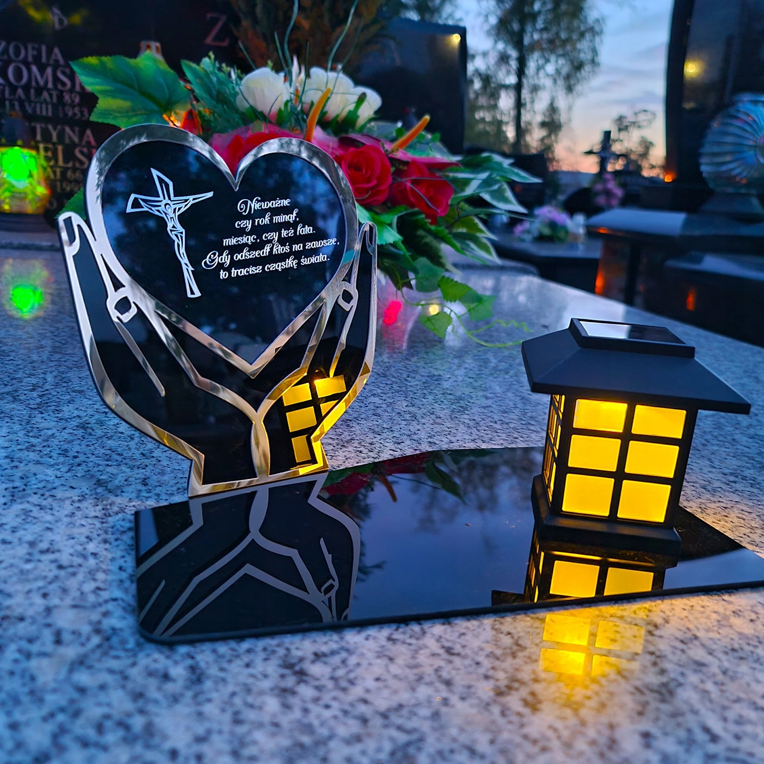 Lampa solara Decortrend, statueta pentru cimitir, acrilica, personalizabila, 14x22,5x13,5cm, set cu lampion