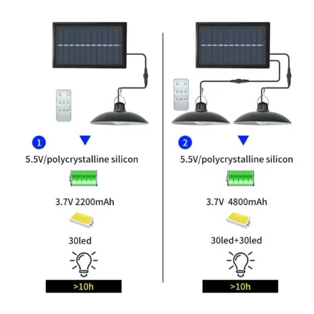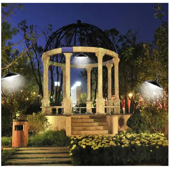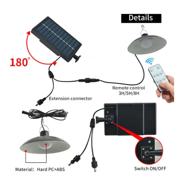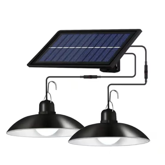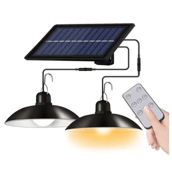 Lampa Solara Dubla, Cu Abajur, 3 Moduri de Iluminare, Interior/ Exterior, Senzor de Amurg, Control Prin Telecomanda, Lumina Alb Rece, Cablu 3m, Culoare Negru