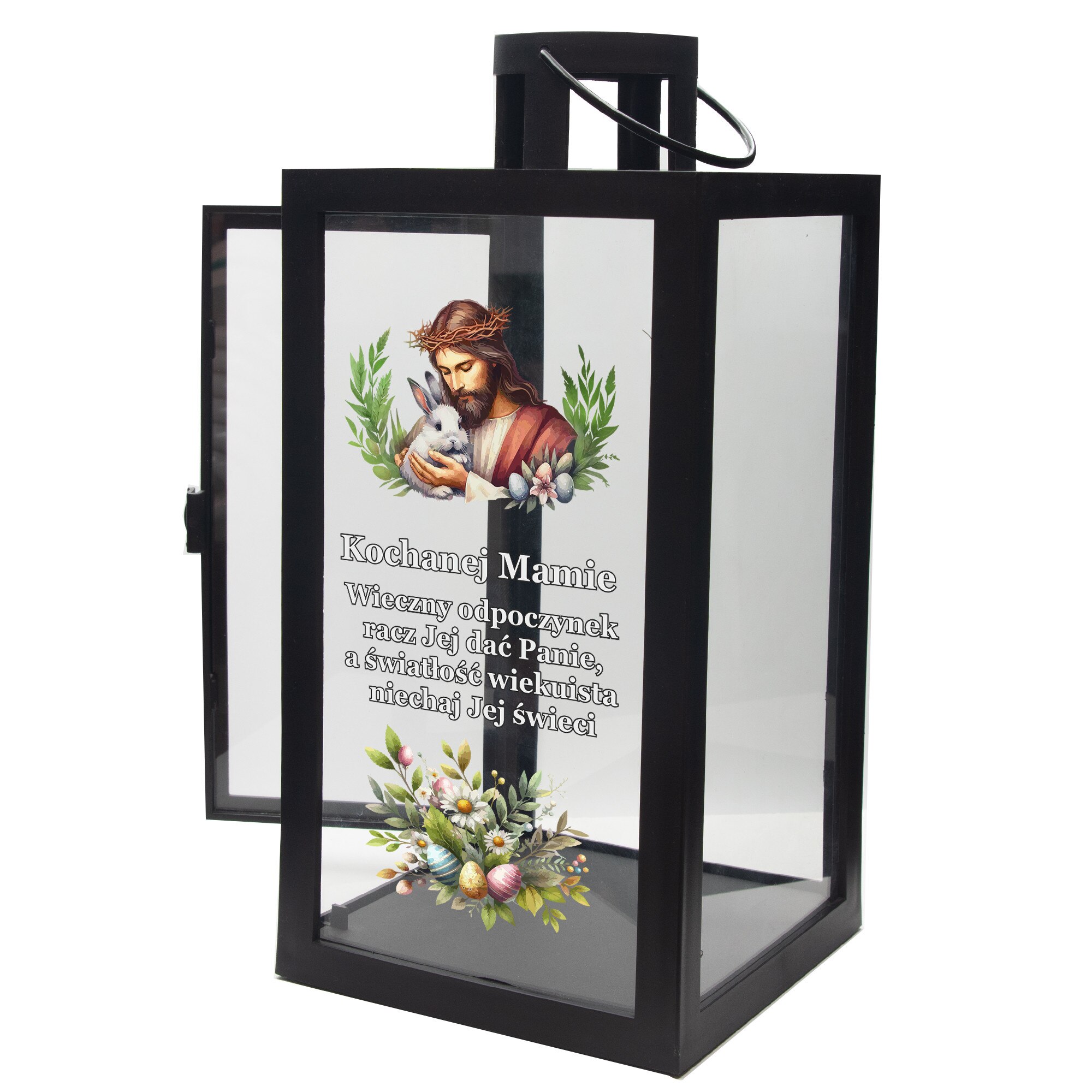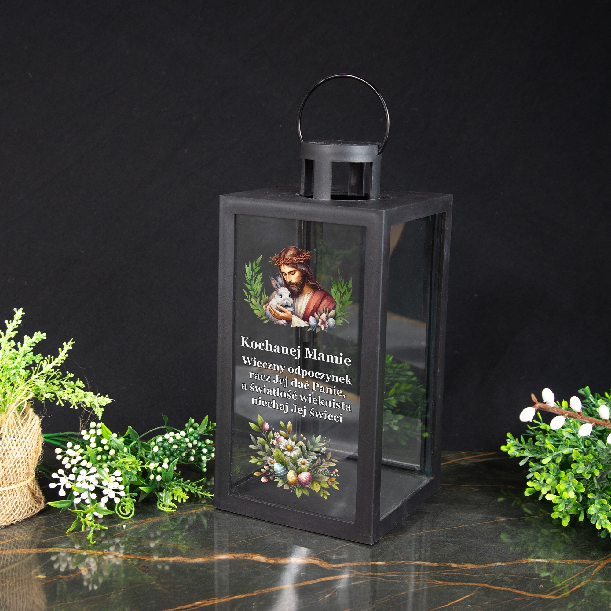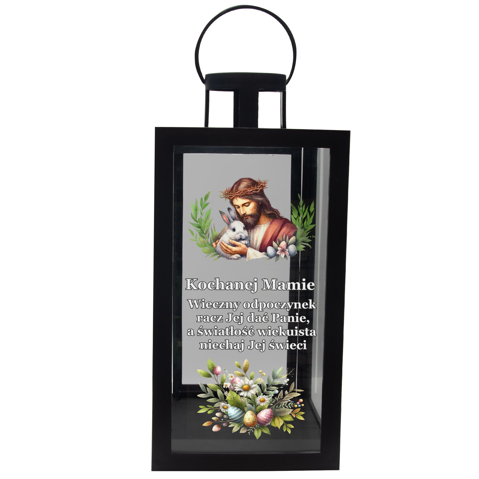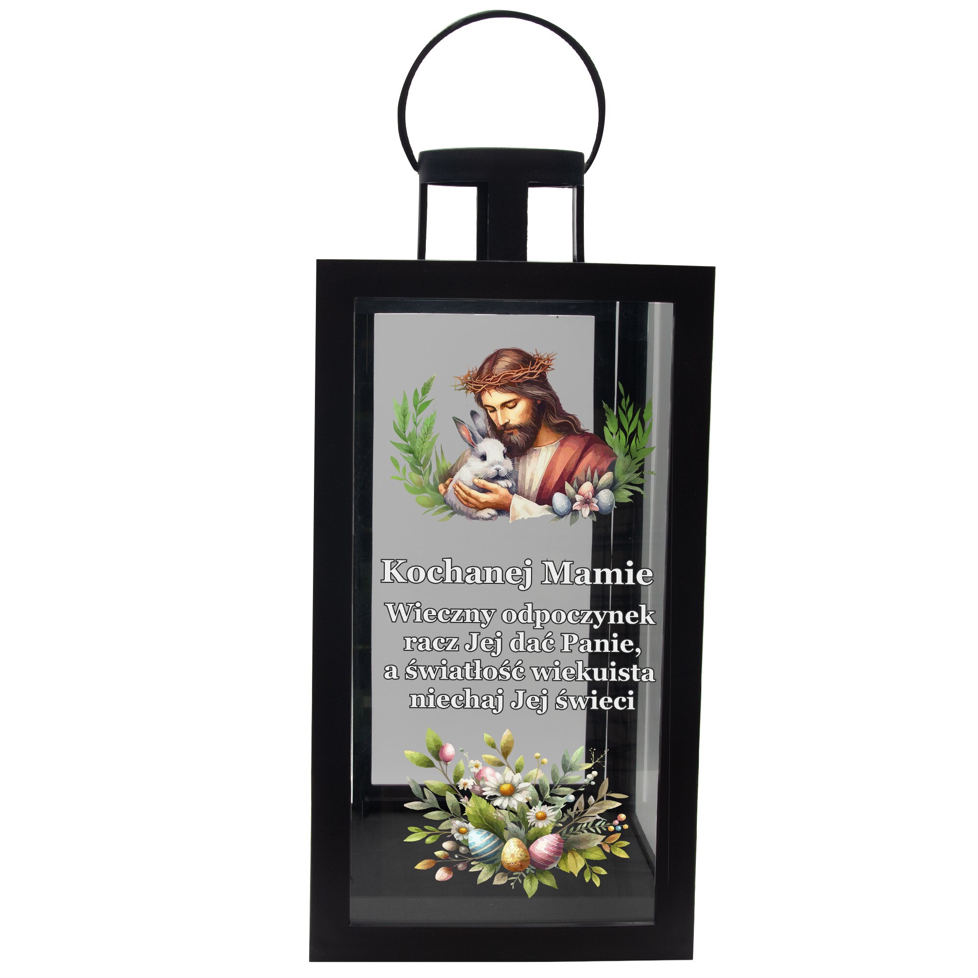 Lanterina decorativa pentru mormant, DECORTREND, "Kochanej Mamie", neagra, 21x10x10cm