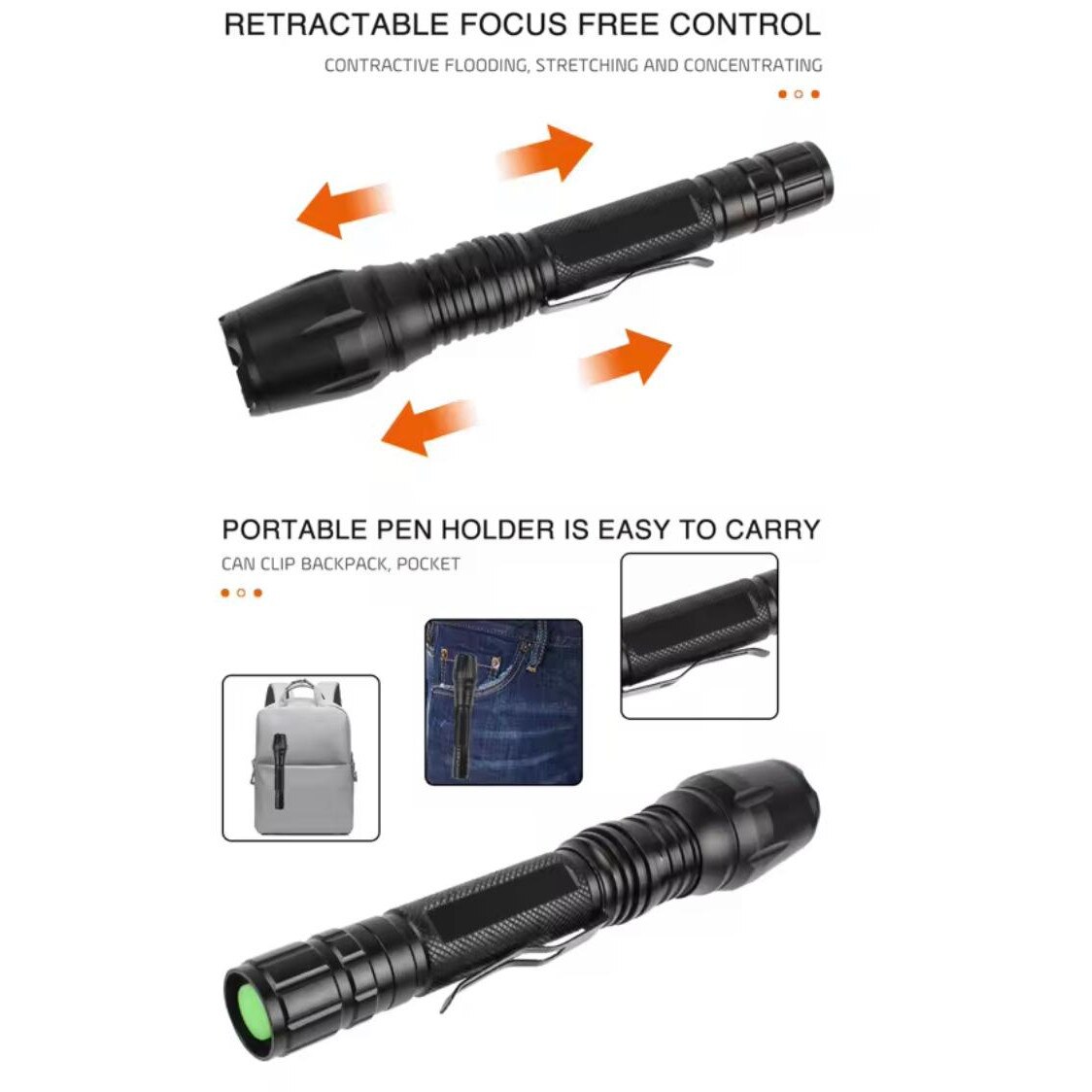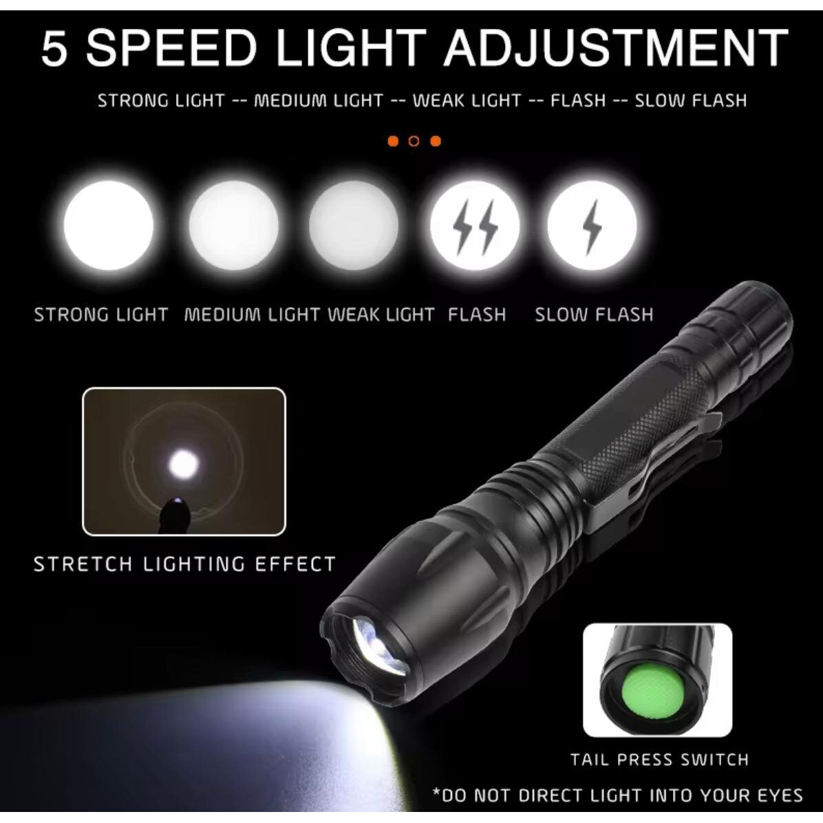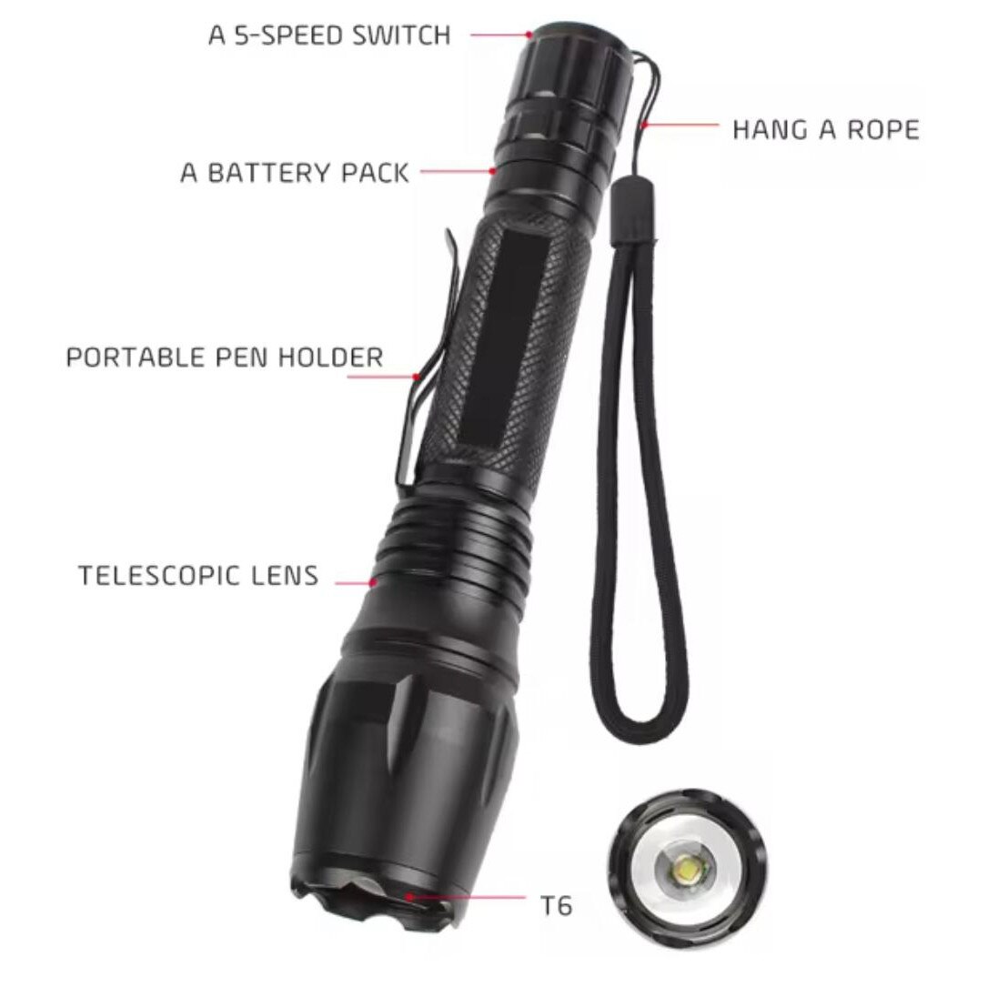 Lanterna LED 3W cu comutator de presiune, suport, 2 baterii reincarcabile, incarcatoare AC si DC, aliaj de aluminiu, rezistent la apa si socuri