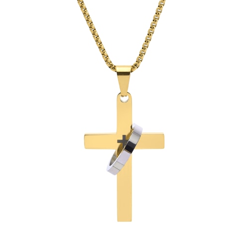 Lantisor barbatesc cu pandantiv in forma de cruce simpla cu inel, otel inoxidabil, placat cu aur, Tessero