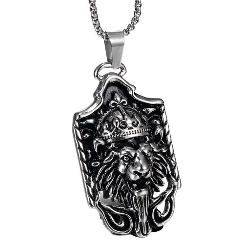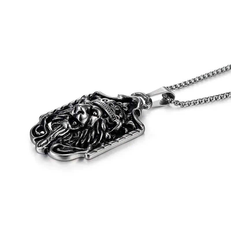 Lantisor cu pandantiv in forma de placuta cu cap de leu incoronat, otel inoxidabil placat cu argint, Tessero, argintiu