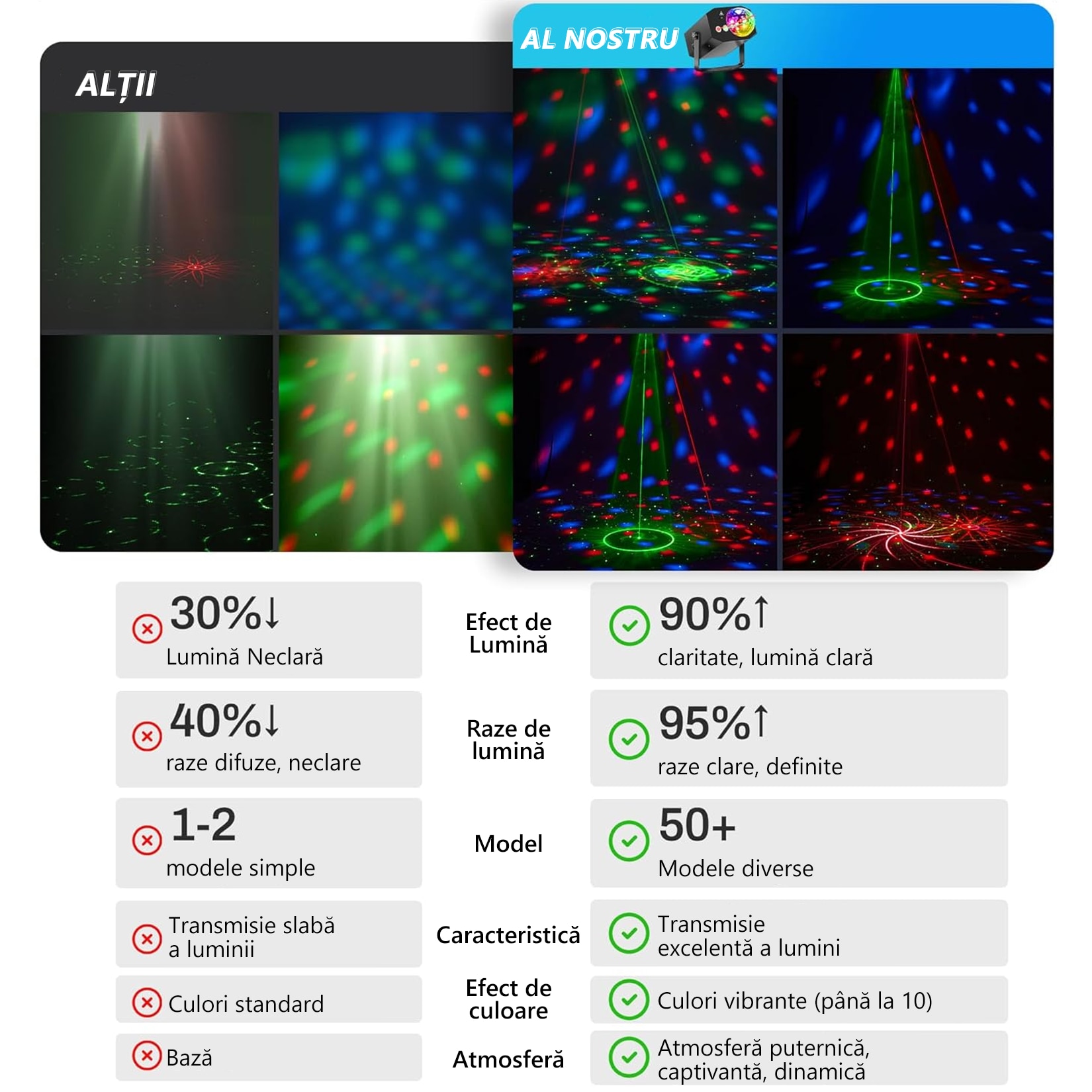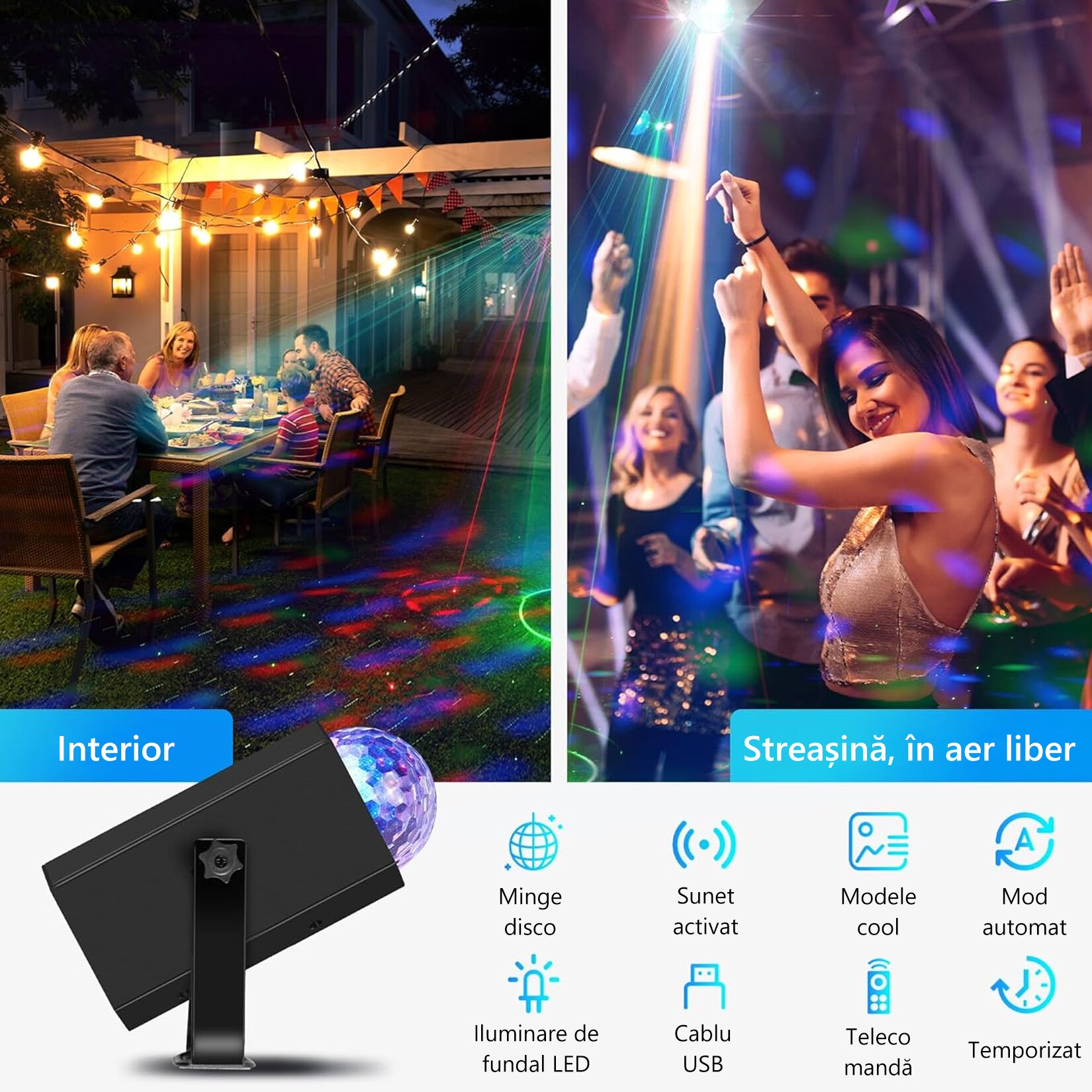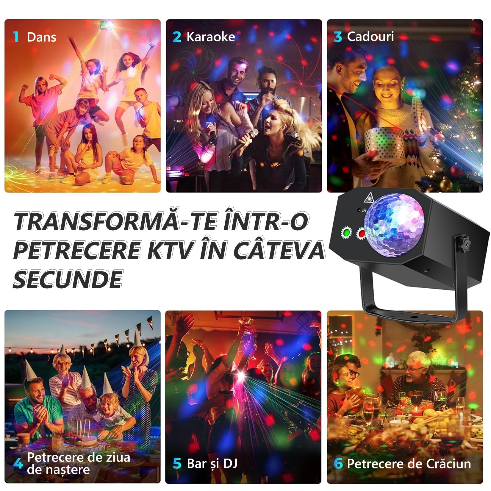 Laser lumini disco, MOROVAN, Proiector de lumini disco cu glob disco, telecomanda, sound control, multiple jocuri de lumini, laser effect, 64 modele laser, alimentare priza sau USB, carcasa metalica, Pentru scena de bar, camera, dormitor, 19X13X9cm, Negru