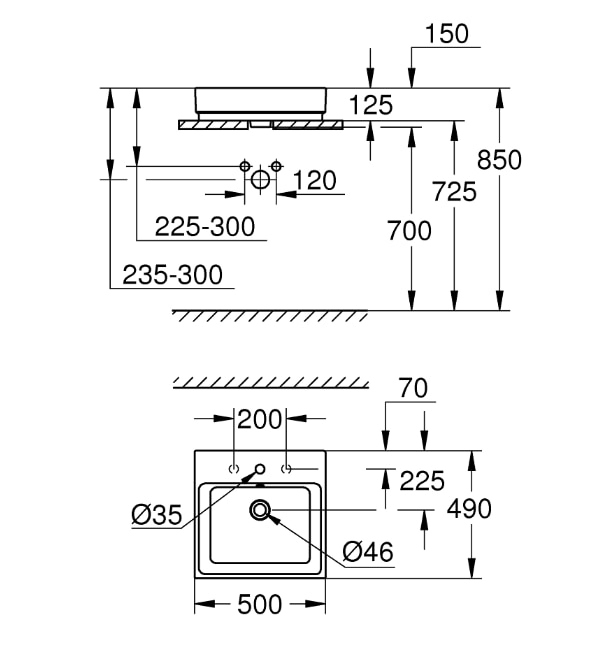 Lavoar Grohe Cube Ceramic 3947800H, pe blat, 500 x 490, PureGuard, alb