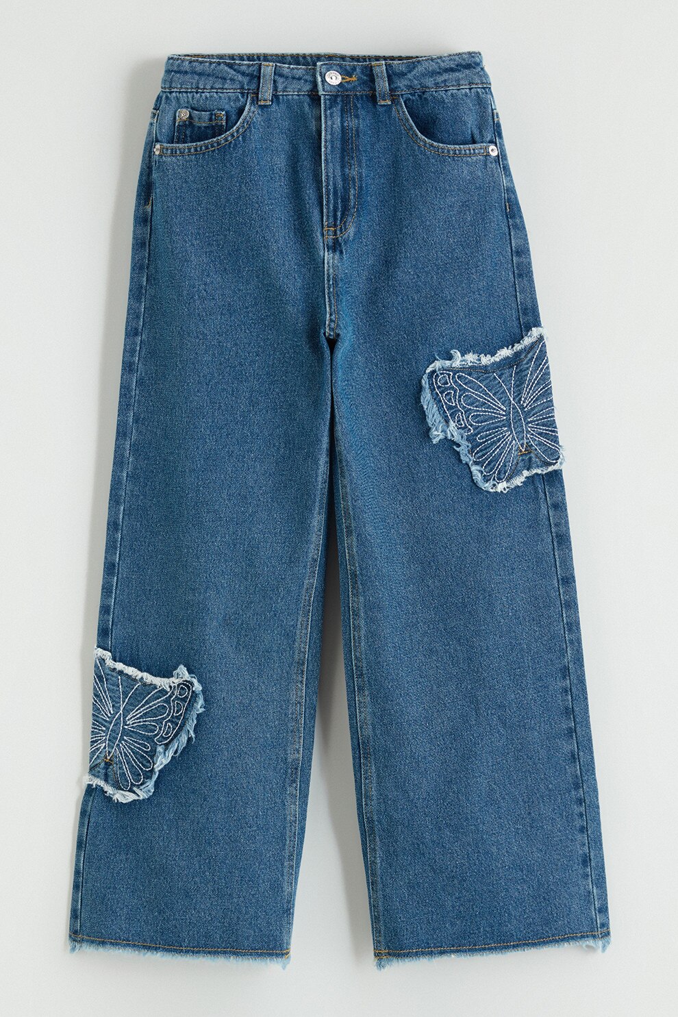LC WAIKIKI, Blugi cu croiala ampla si buzunare, Albastru melange, 122-128 CM