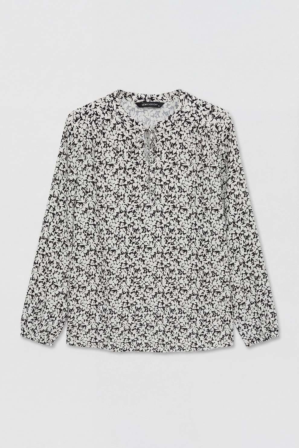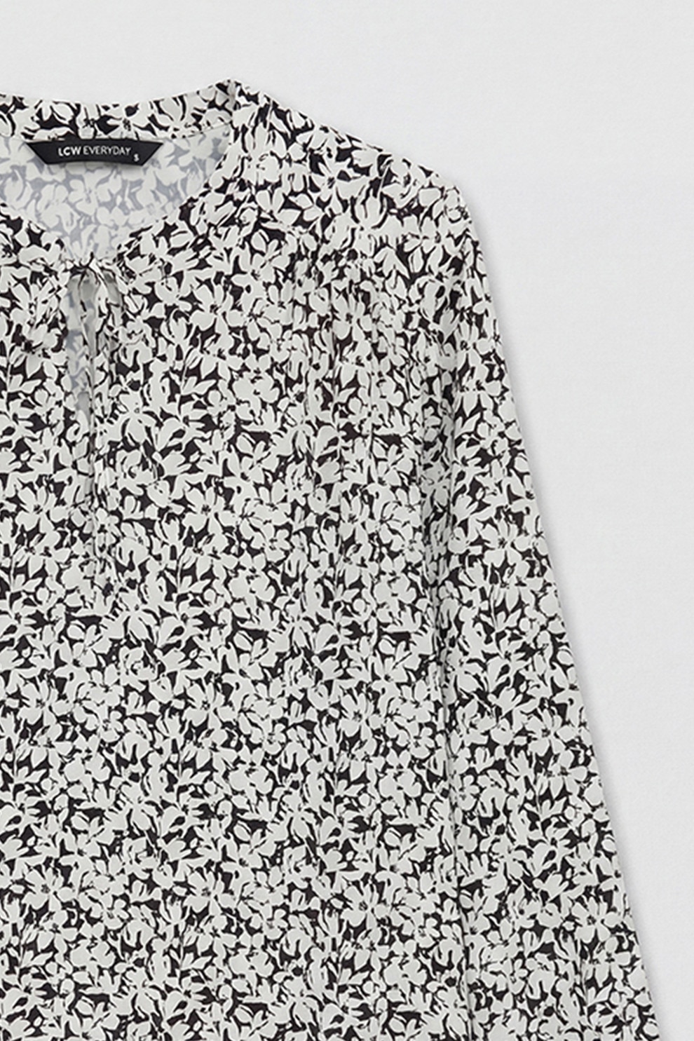 LC WAIKIKI, Bluza cu model si snur la baza gatului, Negru, Alb murdar, 44