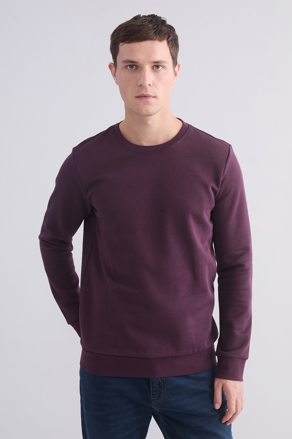LC WAIKIKI, Bluza de trening cu decolteu la baza gatului si model uni, Violet pruna, 4XL