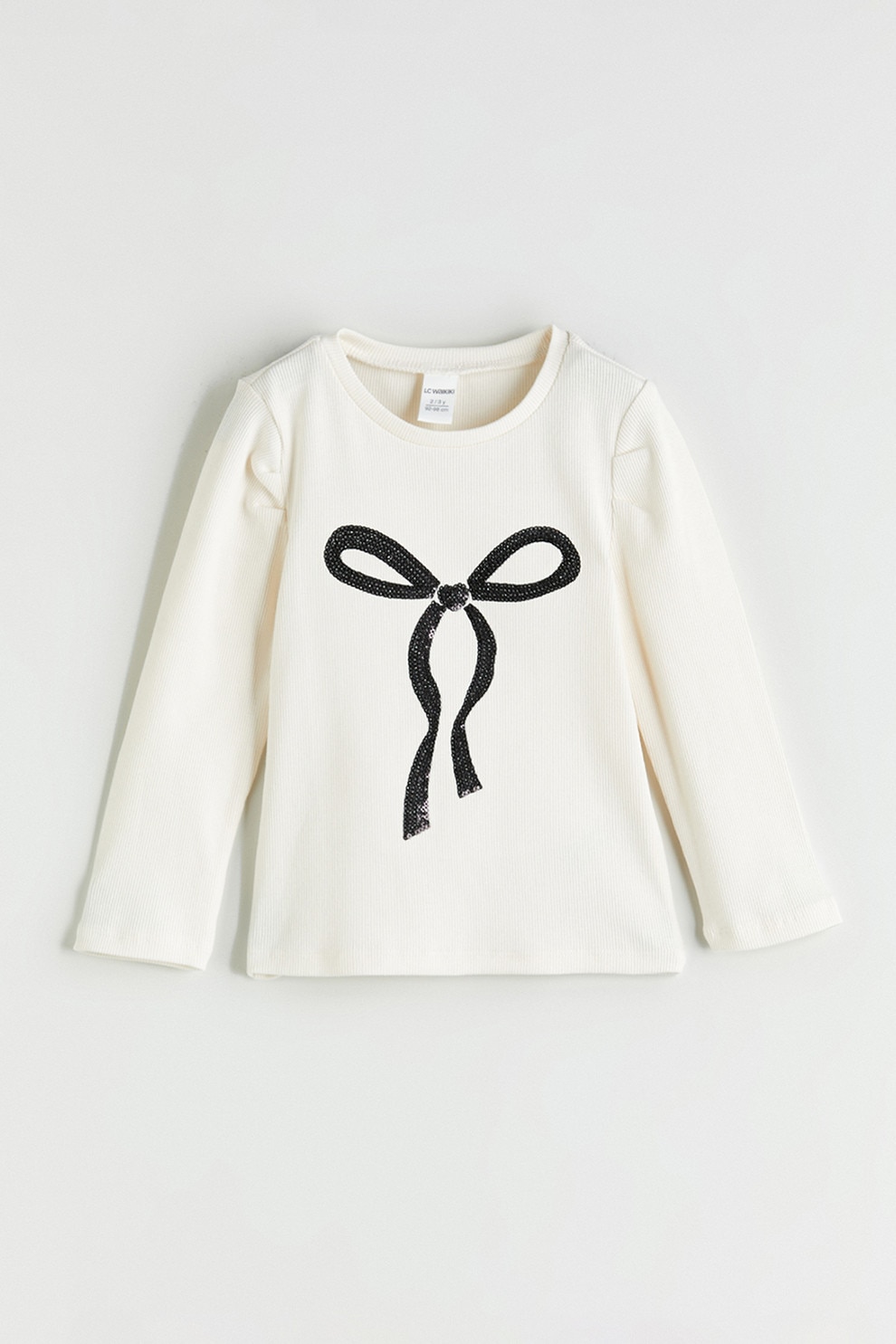 LC WAIKIKI, Bluza din amestec de bumbac cu decolteu la baza gatului, Alb, Negru, 98-104 CM