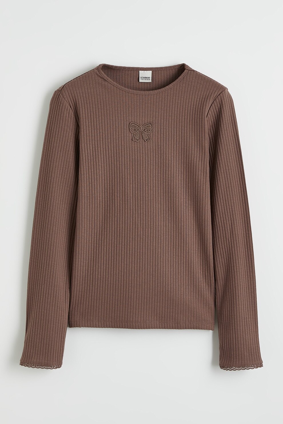 LC WAIKIKI, Bluza din amestec de bumbac cu decolteu rotund, Maro pamantiu, 128-134 CM