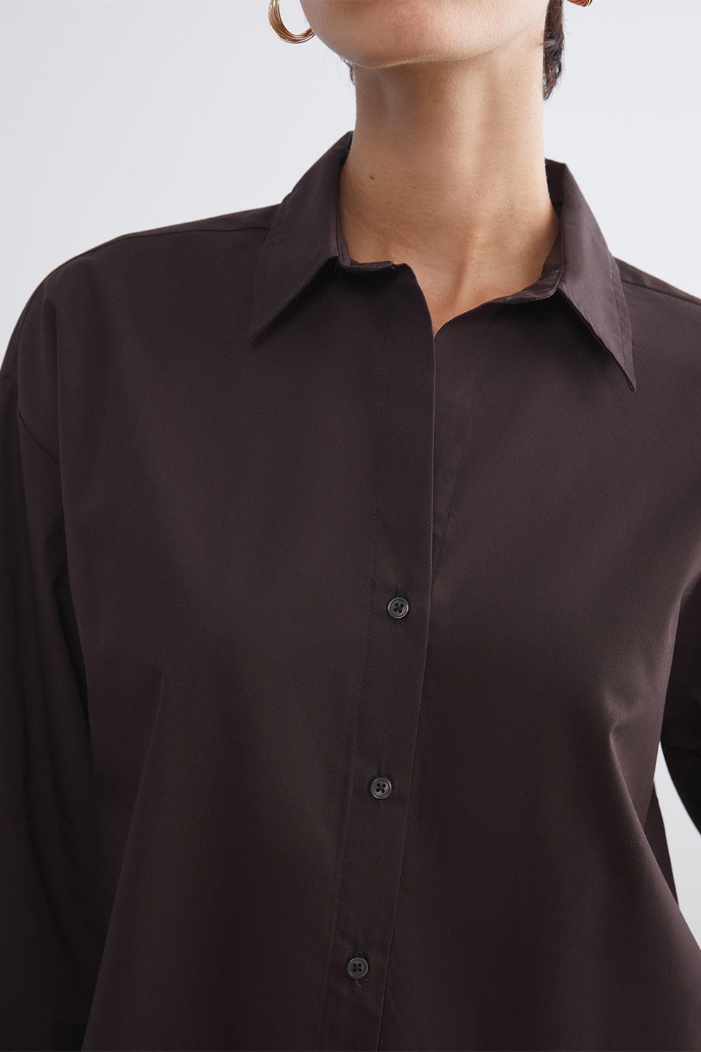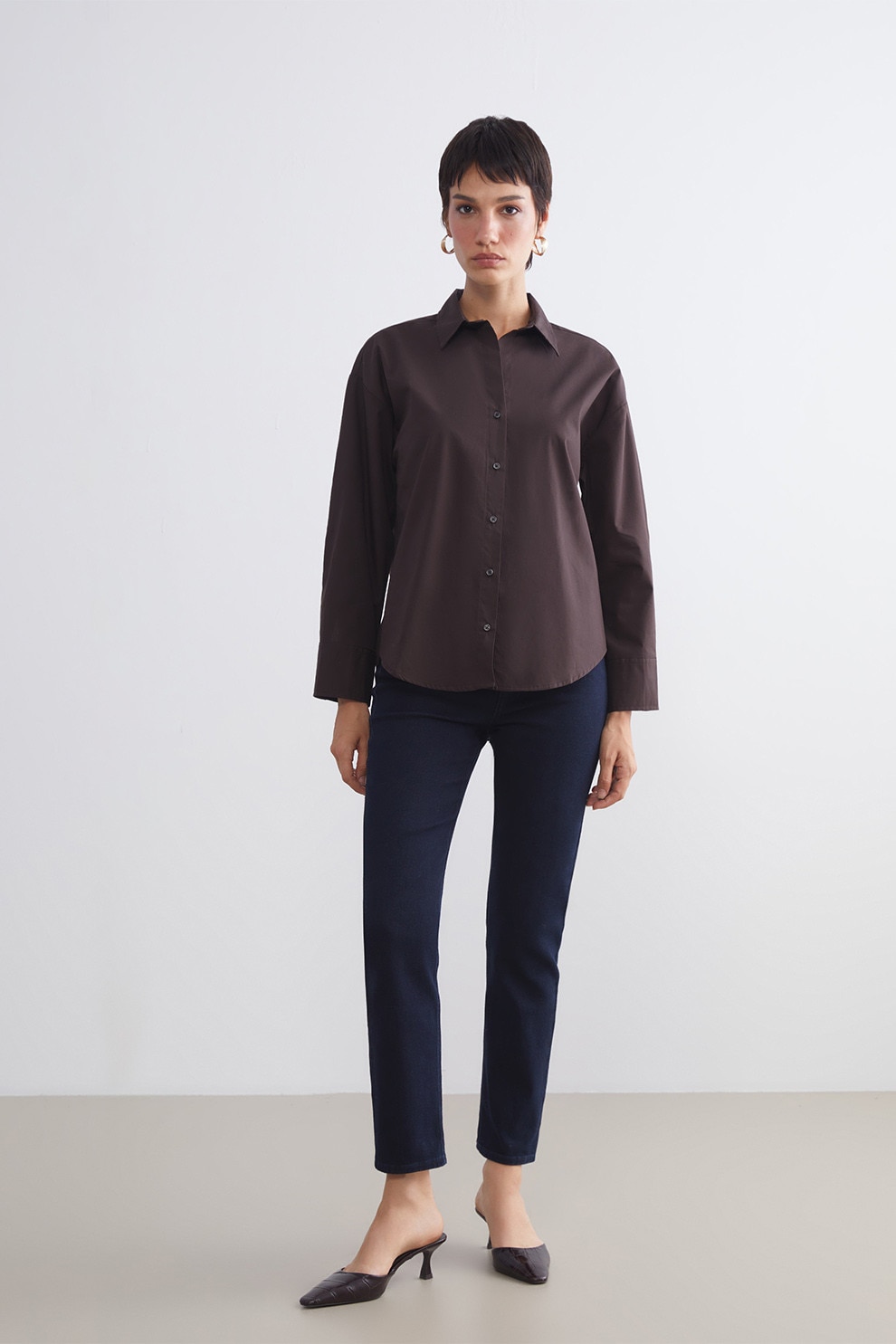 LC WAIKIKI, Camasa uni din bumbac, Maro inchis, XS