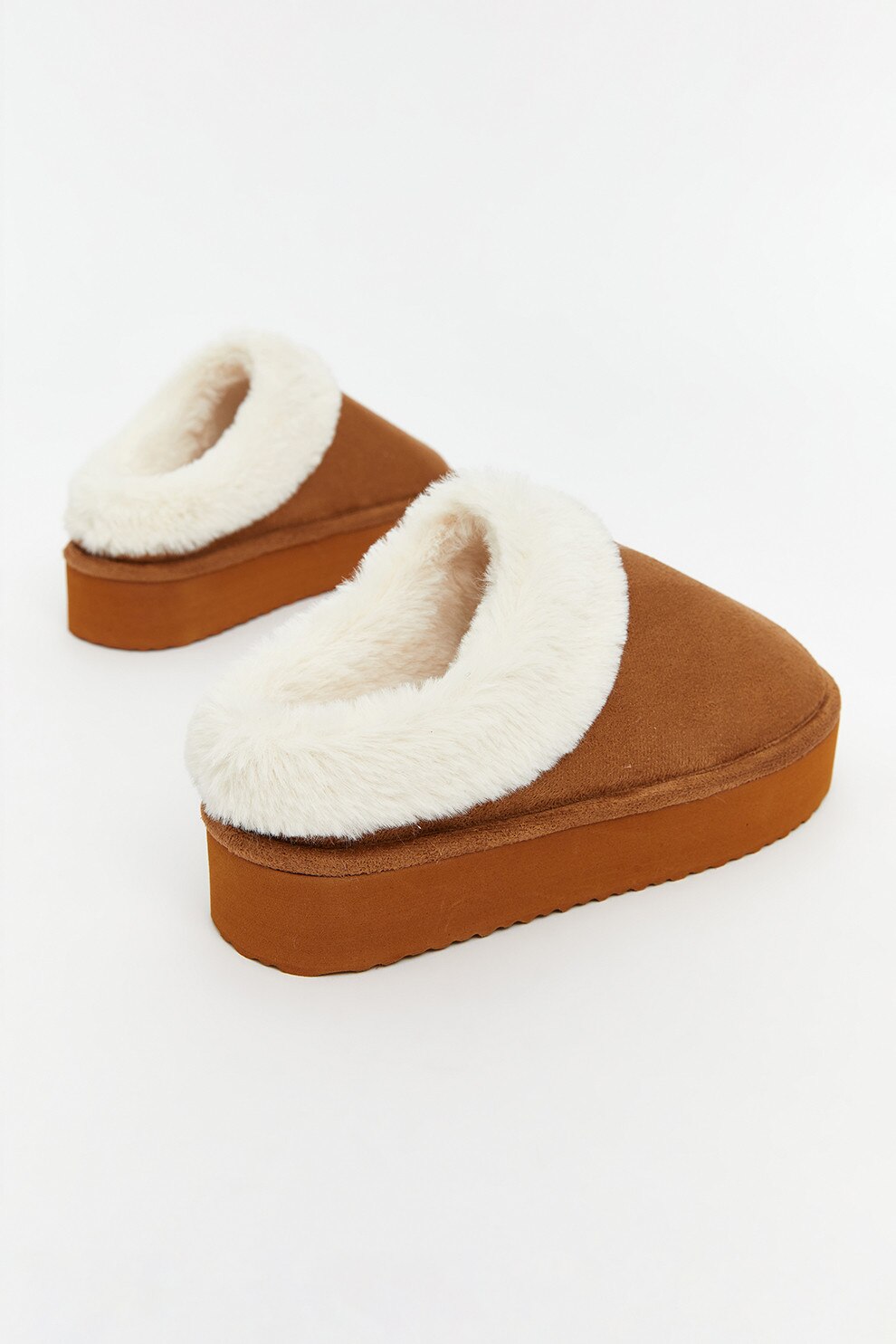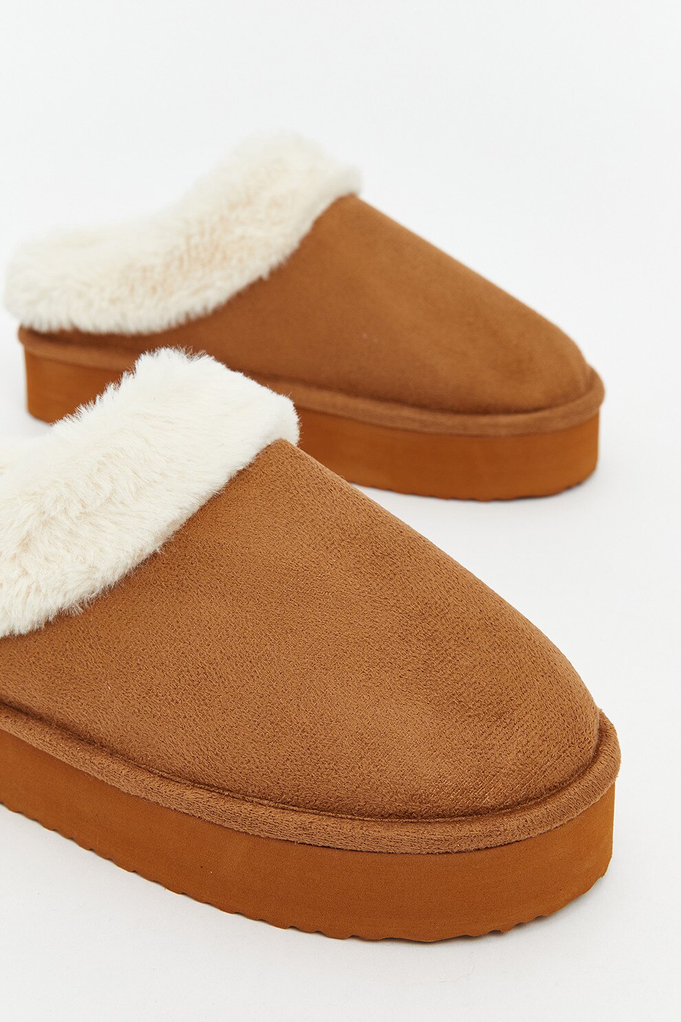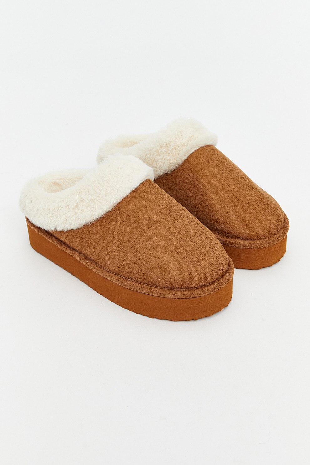 LC WAIKIKI, Papuci de casa flatform din piele intoarsa sintetica, Maro scortisoara