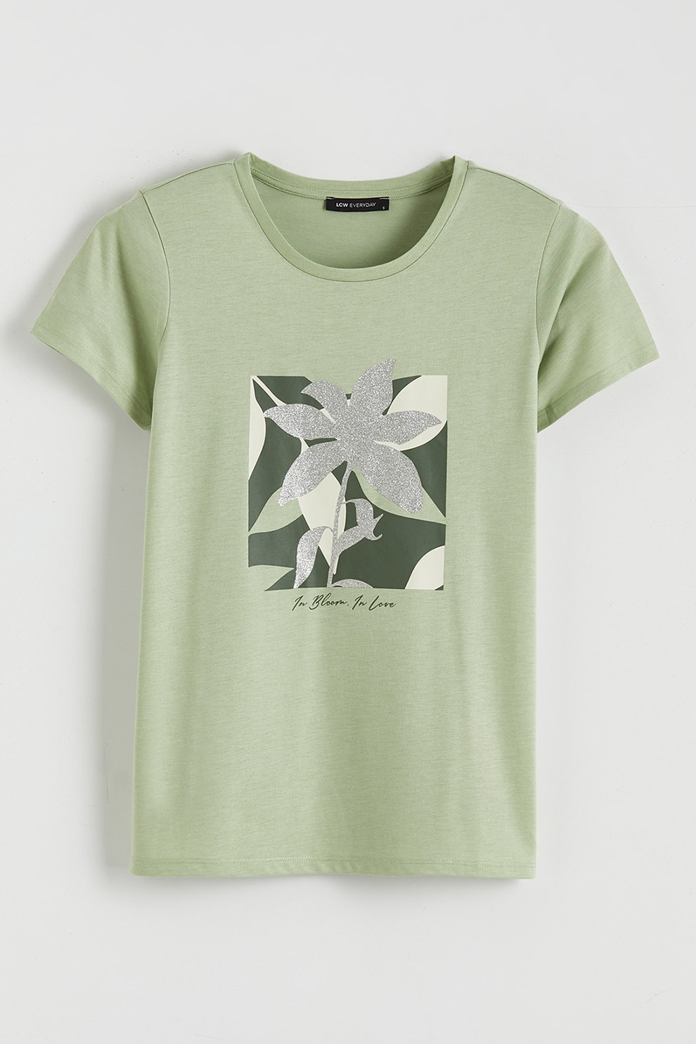 LC WAIKIKI, Tricou cu imprimeu grafic, Verde deschis, Argintiu, XL