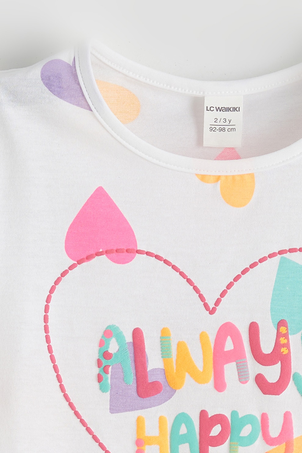 LC WAIKIKI, Tricou cu model inimi, Alb/Turcoaz/Roz