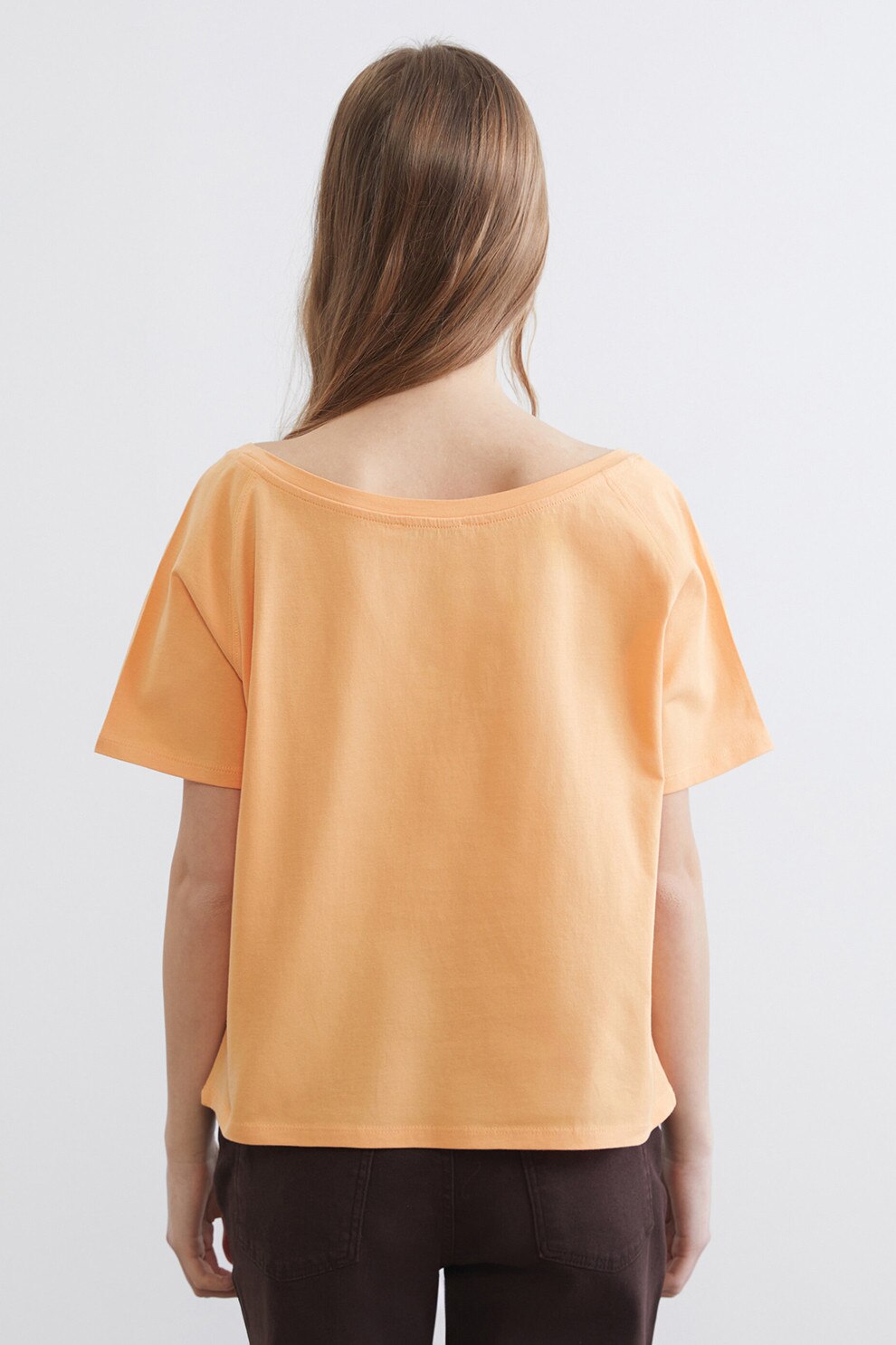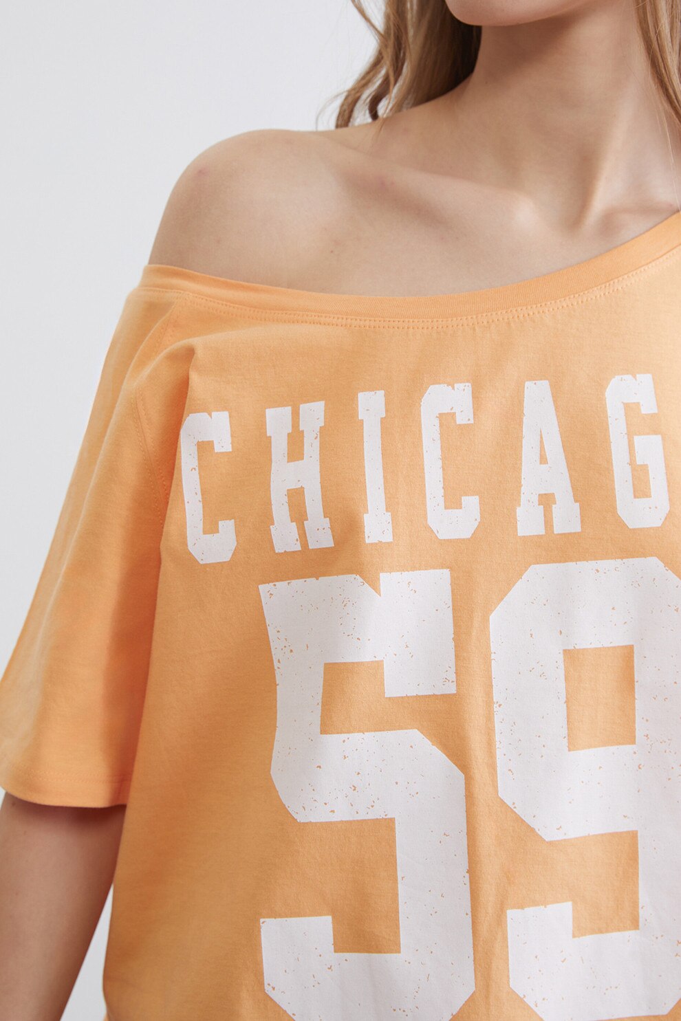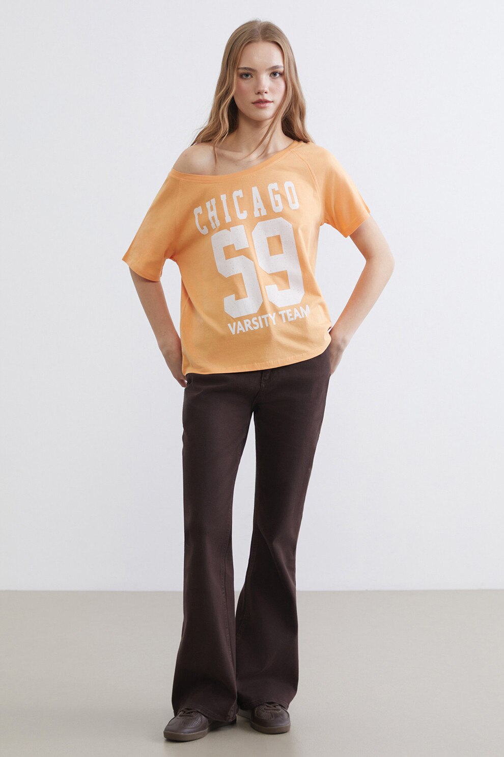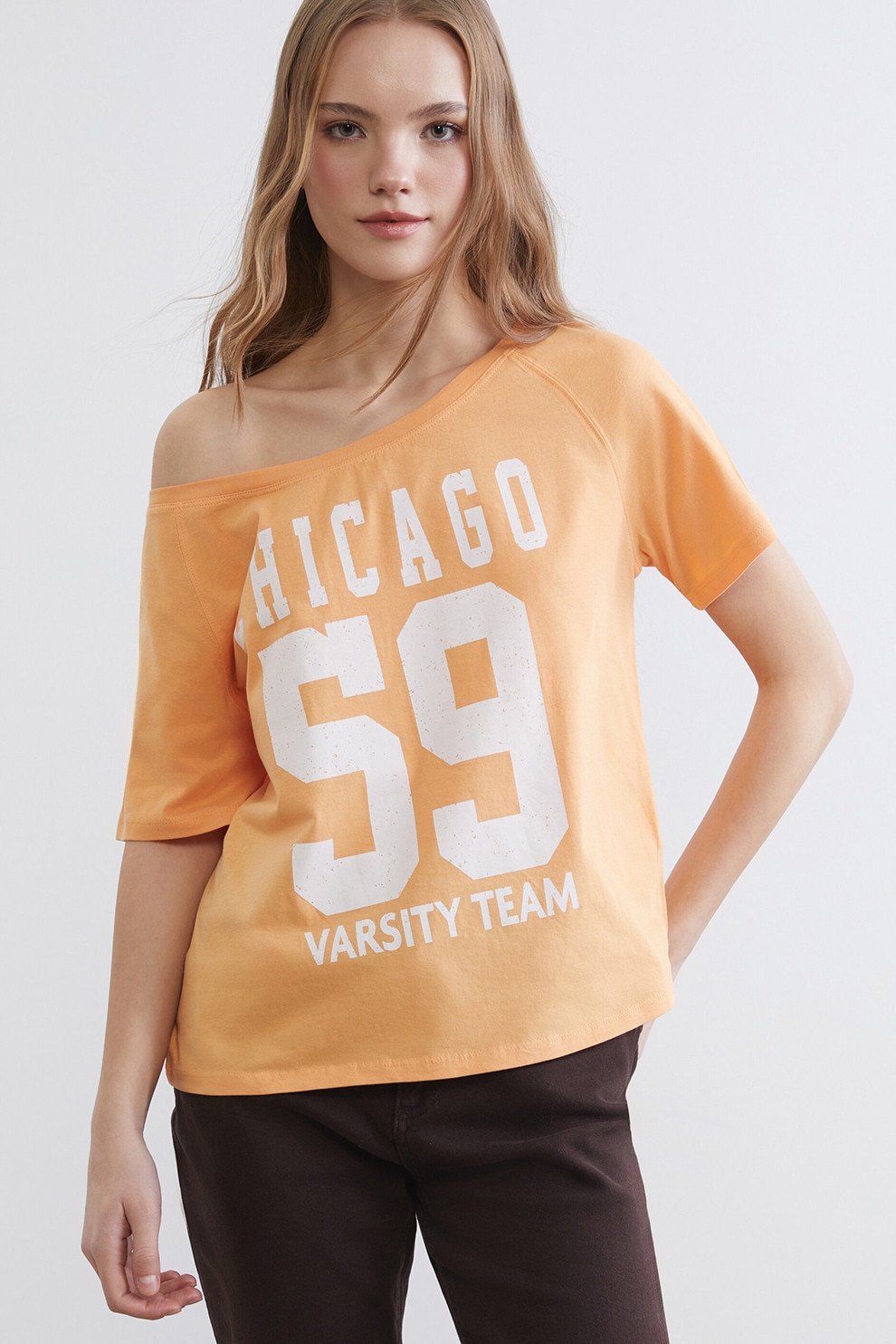 LC WAIKIKI, Tricou lejer din bumbac cu imprimeu text, Alb, Portocaliu pal, XL