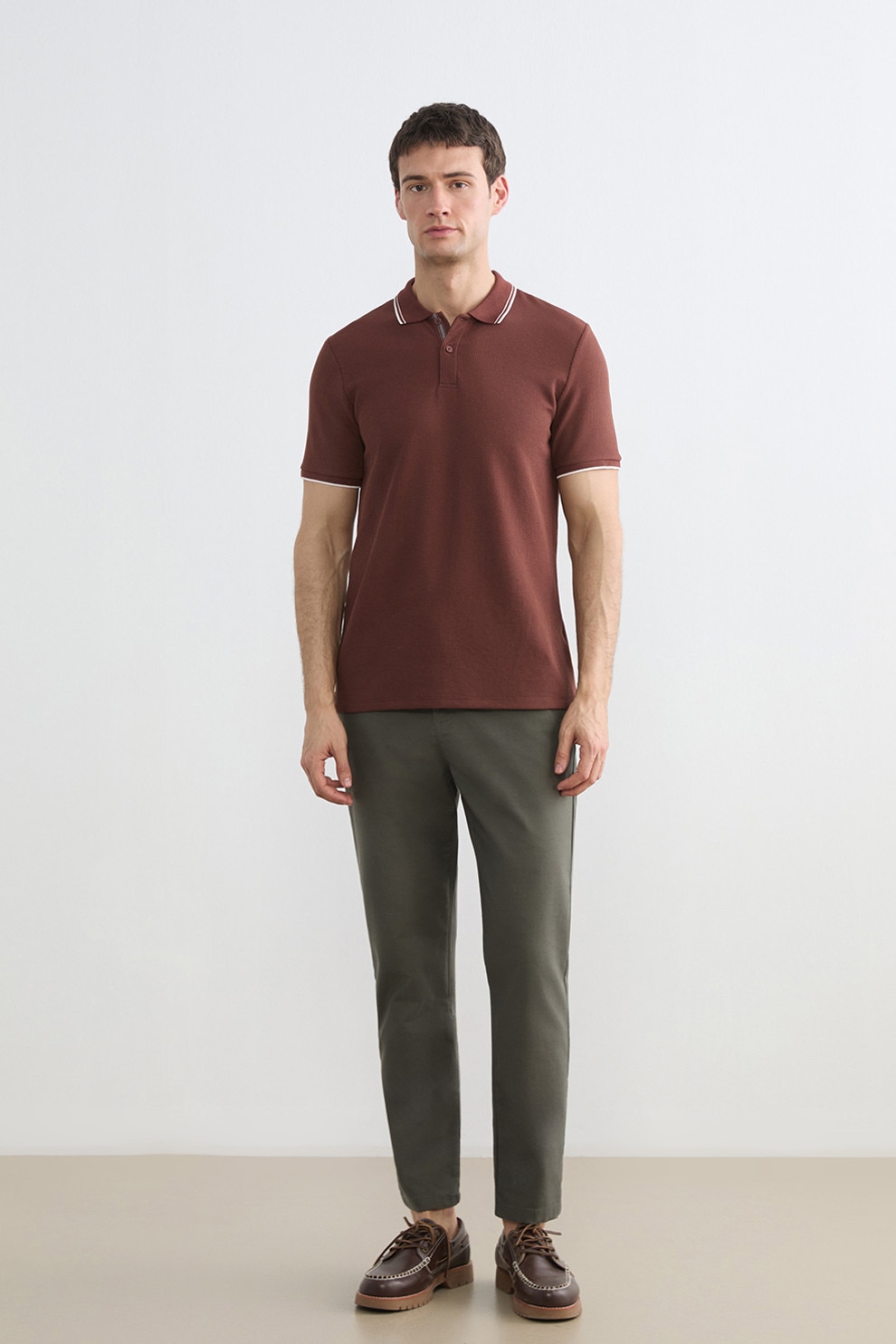 LC WAIKIKI, Tricou polo din amestec de bumbac, Alb/Maro cognac