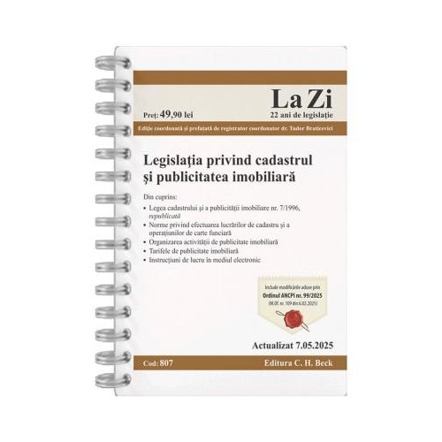 Legislatia privind cadastrul si publicitatea imobiliara. Cod 807. Actualizat la 7.05.2025, Tudor Braticevici