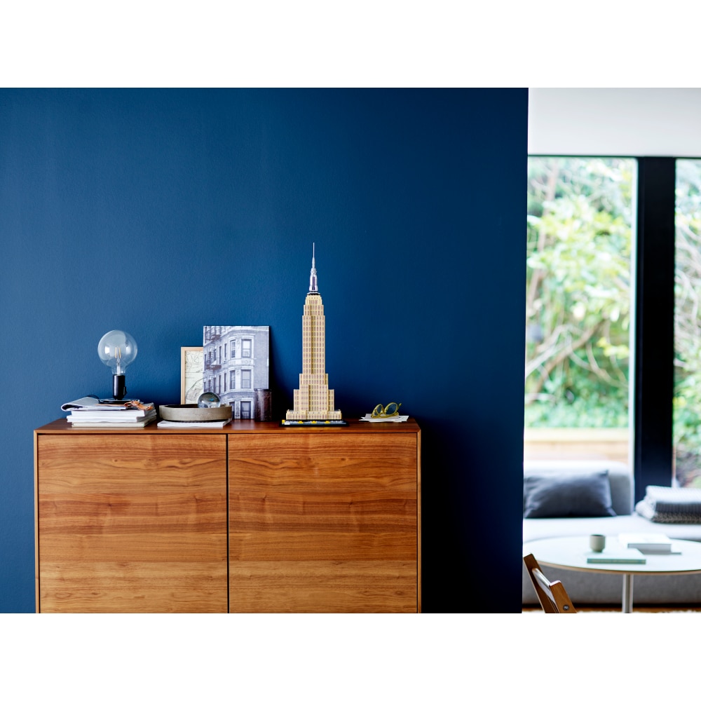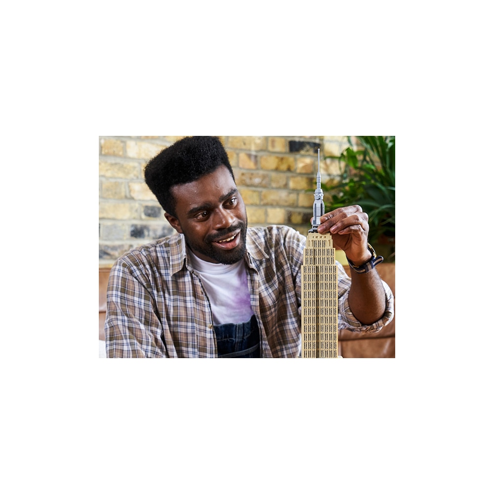 Constructia ramane unul dintre cele mai faimoase puncte de reper din lume, atragand aproximativ 4 milioane de vizitatori pe an. Aceasta interpretare LEGO Architecture surprinde remarcabilul design simetric al cladirii, de la cele 4 fatade din pereti cortina pana la turnul de antena art deco, si are inaltimea de 55 cm - cel mai mare model LEGO Architecture de pana acum (iulie 2019). O placa de baza din placi infatisand Fifth Avenue si strazile din jur, intregita cu taxiuri galbene si o placa de nume decorativa desavarsesc acest model magnific.