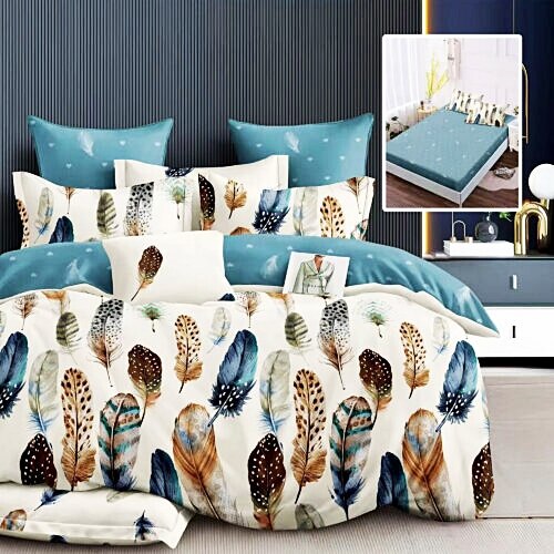 Lenjerie de pat Finet, cearceaf cu elastic 160x200cm, 6 piese, pentru pat dublu, multicolor, Ralex Pucioasa, LDP-FINH160-297