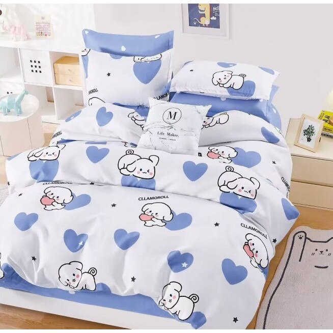 Lenjerie de Pat, Finet, Cearsaf cu Elastic, 1 Persoana, 4 Piese, 140x200cm, Imprimeu Ursuleti, Albastru-Alb