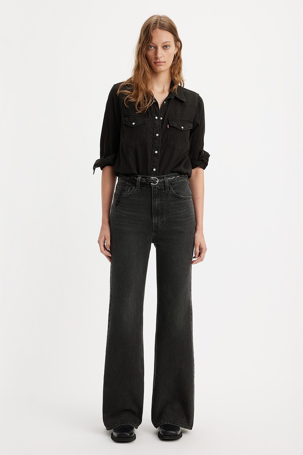 Levi's - Blugi evazati cu talie inalta Ribcage, Negru stins, W29-L30