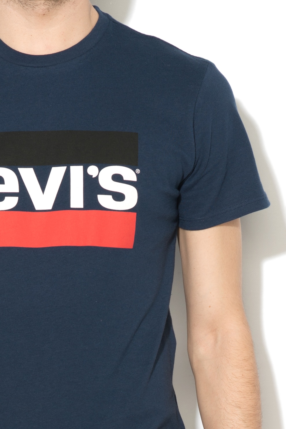 Levi's, Tricou cu decolteu la baza gatului si logo, Albastru, S