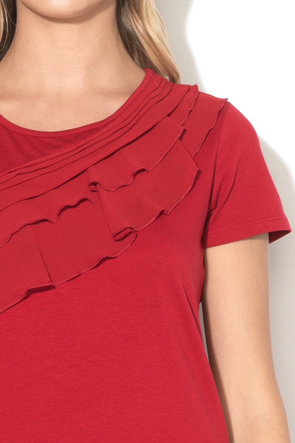 Liu Jo - Tricou cu detalii cu volan, Rosu, XS