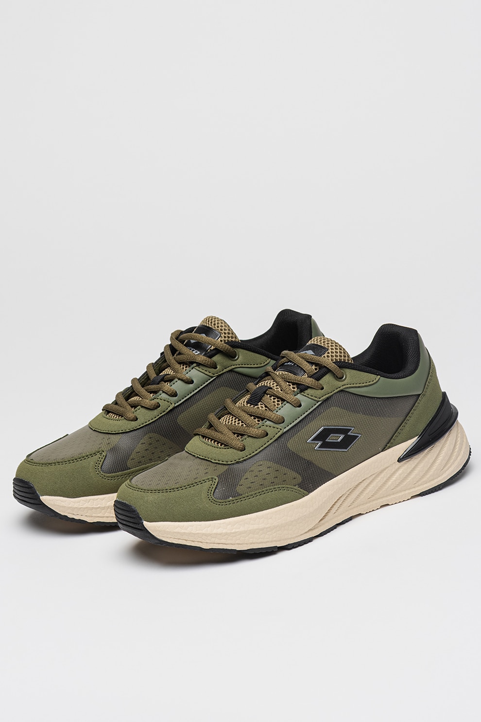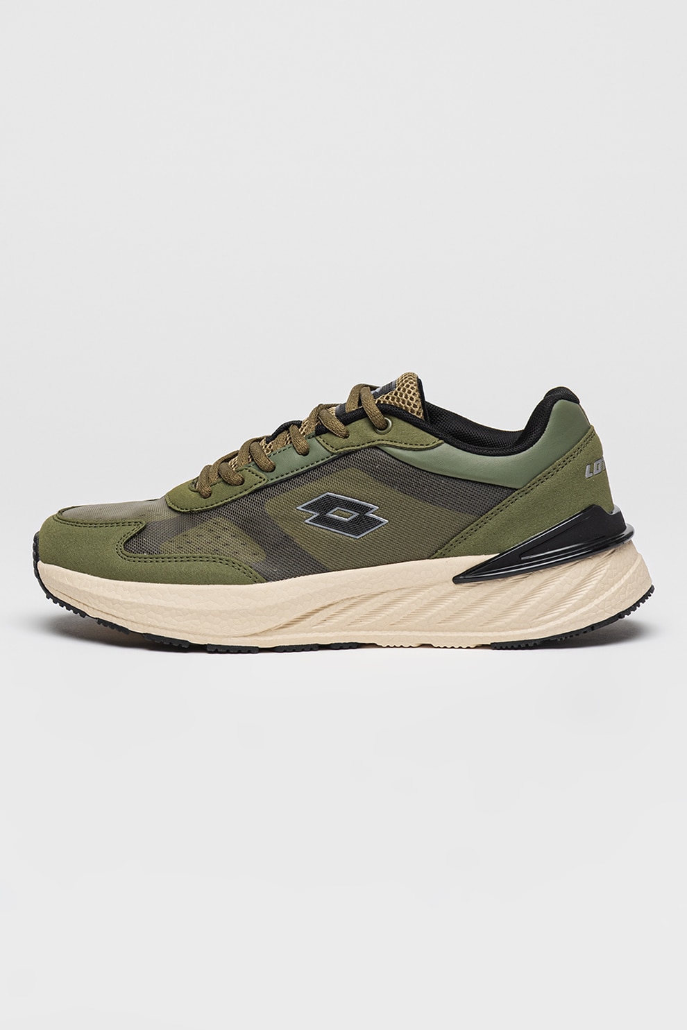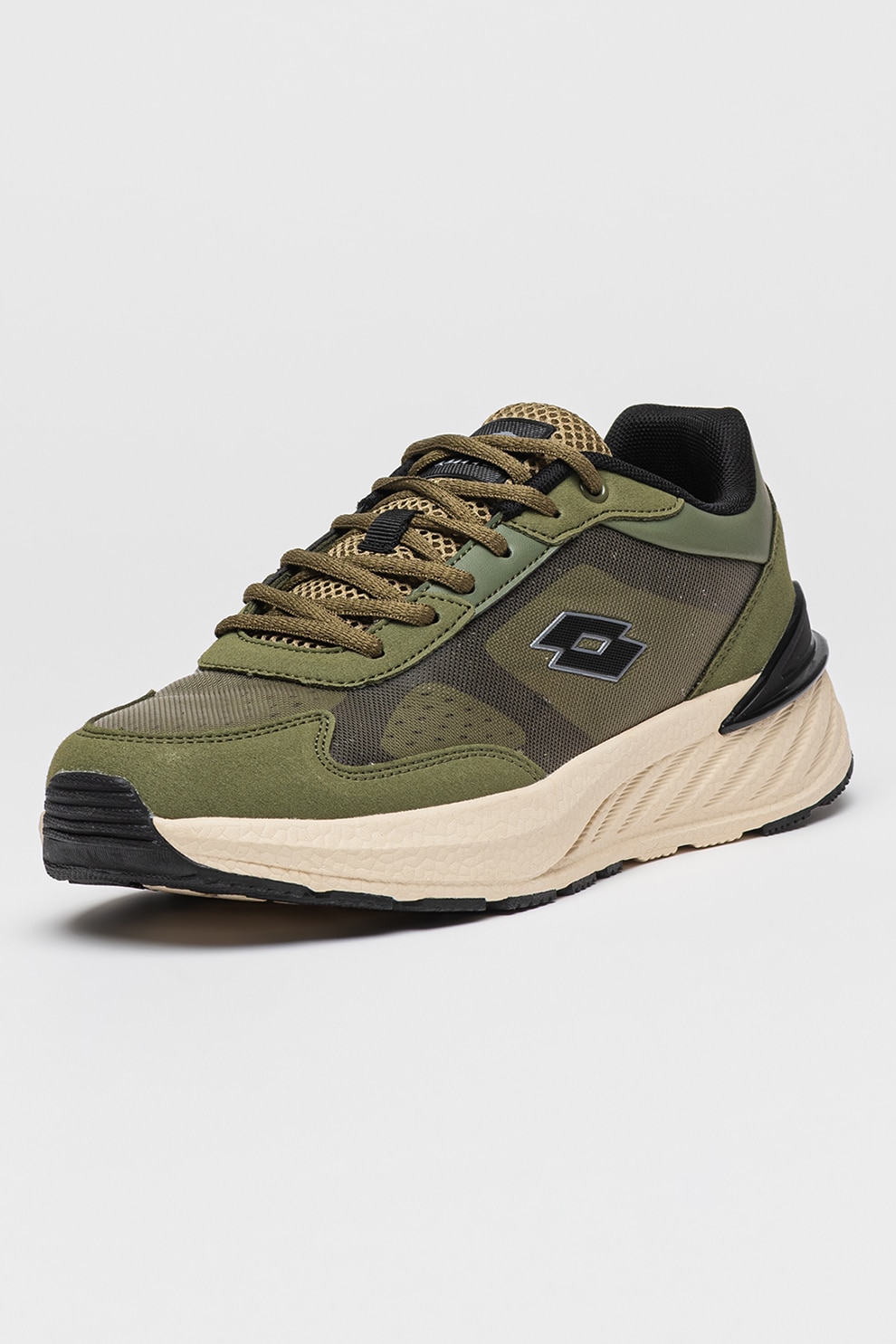 Lotto - Pantofi sport cu insertii de plasa Maran, Negru/Kaki pal