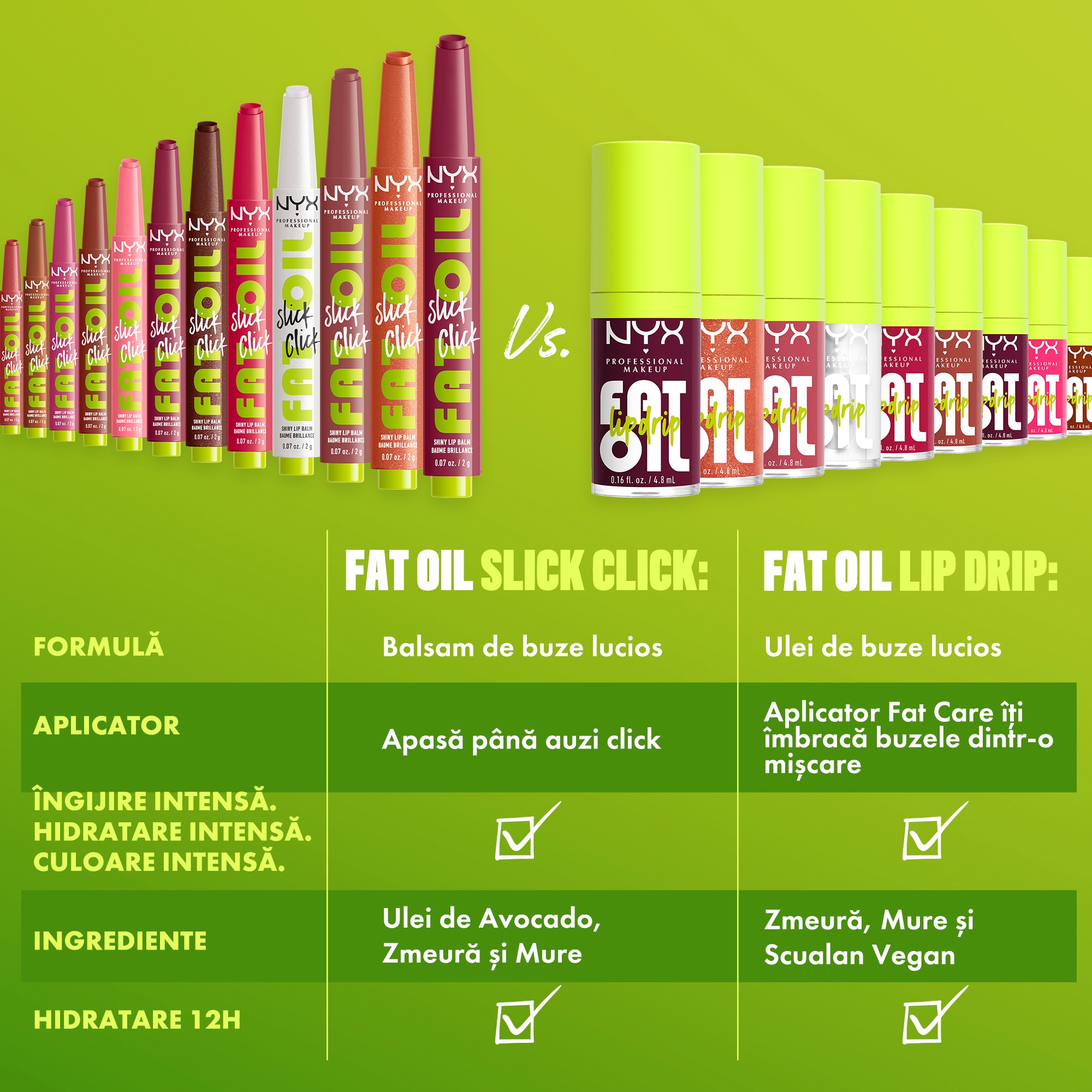 Luciu de buze NYX Professional Makeup Fat Oil Slick Click 19 Caption This, 12H hidratare, stralucire intensa, 2 g