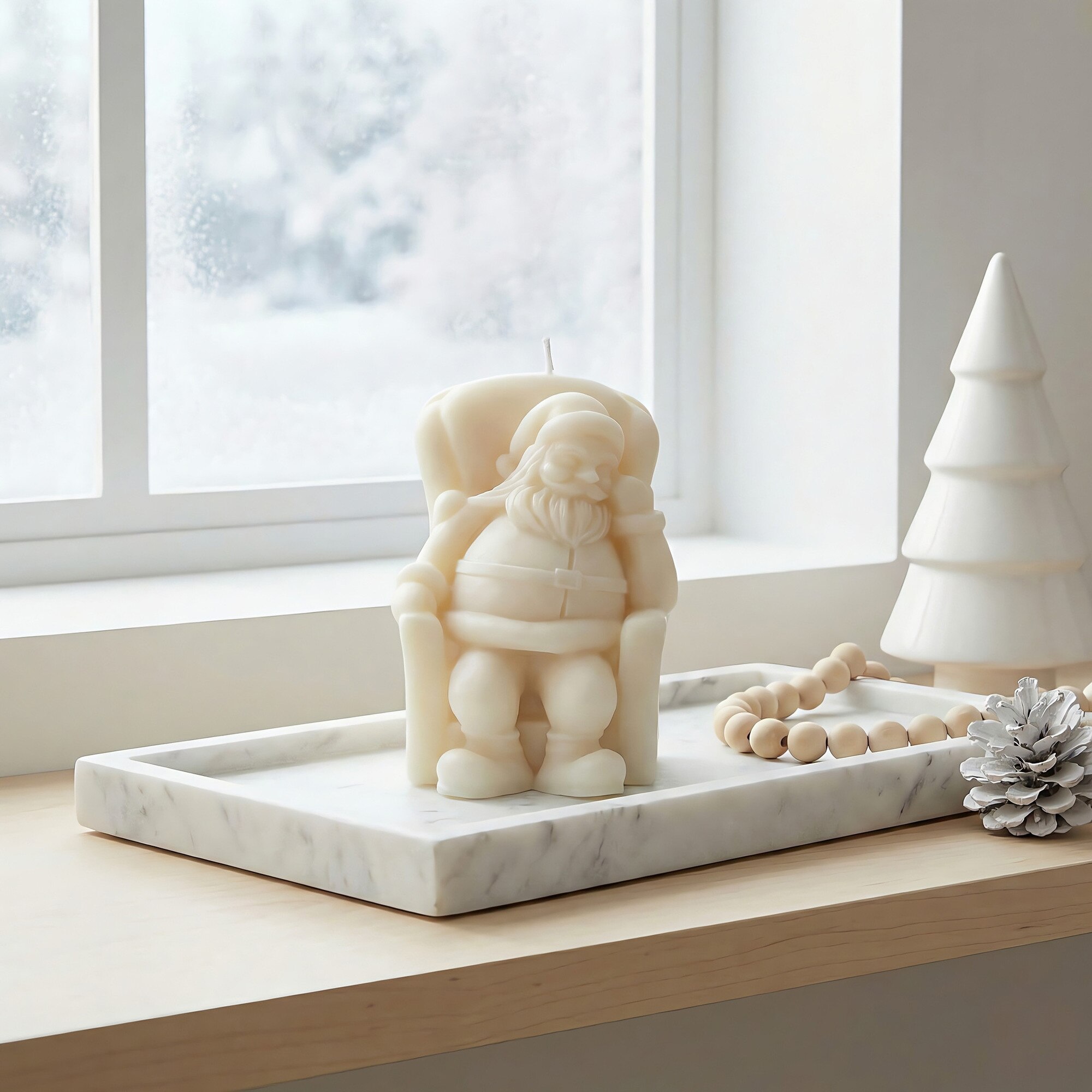 Lumanare din ceara naturala de albine, Happy Candles, Mos Craciun, Galben, Handmade, Craciun, 140g